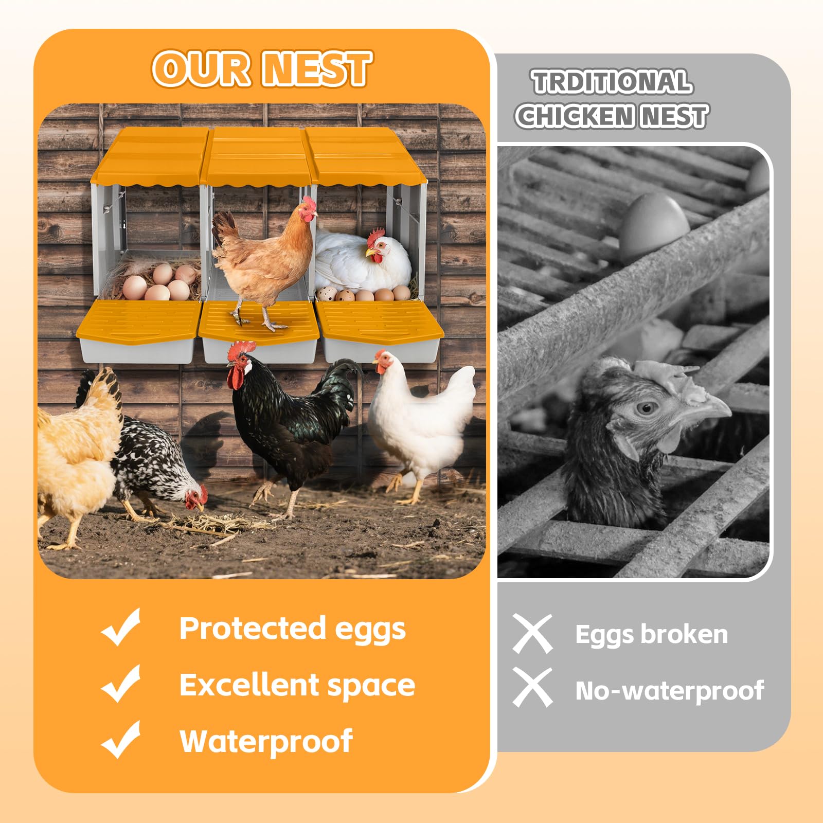 Description du produit Parfait pour les propriétaires de poulet Que ce soit pour les fermes avicoles amateurs ou les petites fermes avicoles, elle est disponible en 3 compartiments et offre suffisamment d'espace pour les besoins de vos poules. Poulailler 2 poules : le guide pour une installation optimale – La jolie poule pondeuse Les surfaces lisses et le sol en plastique amovible permettent un nettoyage et un entretien faciles. Matériau robuste et durable : fabriqué en plastique polypropylène robuste, ce nichoir est conçu pour une longue durée de vie, hydrofuge, résistant à l'usure et pas facile à déformer, offrant une protection pour vos poules des conditions extérieures difficiles. Un accessoire idéal pour tout poulailler ou poulailler. Pondoir Poule Nichoir à Poules3 Compartiments, Fixation Murale, Acier Galvanisé - Nids Et Nichoirs (14338764 Nichoir Poules 3 Cases Convient pour une utilisation en extérieur. Support à œufs écologique avec 3 heures : convient pour les poules, offre plus d'intimité pour les poules et permet de garder les œufs toujours propres et empêche les poules de les manger. Conception de ventilation : le nichoir est équipé d'ouvertures d'aération et d'une ouverture frontale pour assurer une circulation d'air optimale et créer un environnement sec, sans odeur et confortable pour vos poules tout en empêchant l'humidité et la formation d'odeurs. Notre nichoir fabriqué en plastique de haute qualité est très résistant aux conditions météorologiques difficiles. PawHut Nichoir à Poules, 3 Compartiments, Nichoirs En Bois Pour Poules Pondeuses Avec Rideaux D Intimite En outre, la conception du toit empêche l'accumulation d'eau., Mode d'emploi 1 Nid pour Poules - Pondoir Premium - 3 Compartiments - Nid Résistant, pour Différentes Races de...
