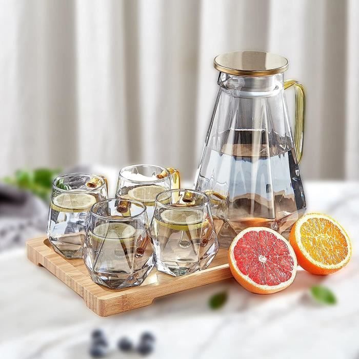 Carafe Verre Borosilicate Couvercle Bambou KADAX Pichet, Pot En Verre, Pot à Eau Avec Bec Verseur Et Verseuse Pour Thé Glacé Jus Il est incassable et résistant aux rayures. En outre, la passoire intégrée est la solution idéale pour retenir les morceaux de fruits ou les herbes, ce qui rend le service des boissons encore plus confortable. Le bec verseur moulé avec précision facilite le versement. Le design lavable au lave-vaisselle (sans couvercle) et la poignée ergonomique offrent un confort que vous ne trouverez pas sur d'autres produits. Design élégant : verre transparent et couvercle en bambou forment un duo esthétique qui est beau sur n'importe quelle table. Durable : la verseuse en verre est fabriquée en verre borosilicate robuste. Cette théière a été conçue pour une utilisation quotidienne. Cet élégant pichet est plus qu'un simple récipient à boire. Pichet en verre KADAX 1L pour boissons et eau avec couvercle Il s'adapte parfaitement à tous les intérieurs, et grâce à sa construction robuste, il vous servira fidèlement pendant de nombreuses années. Un pichet KADAX pratique et spacieux pour boissons froides, parfait pour chaque fête d'anniversaire, fête de prénom, occasion spéciale, fête de famille ou réunion entre amis La théière passe au lave-vaisselle (sans couvercle) et donc très facile à nettoyer. Notre pichet est adapté à toutes les occasions, de l'utilisation quotidienne aux fêtes élégantes. Notre pichet à eau deviendra certainement votre récipient préféré Pour servir des boissons. Ainsi, chaque gorgée devient un plaisir. Le couvercle étanche protège les boissons des insectes et la passoire intégrée retient les morceaux de fruits, les graines ou les feuilles de menthe. En outre, la poignée ergonomique offre une prise en main confortable lors du versement. KADAX Théière de 1,5 l en verre borosilicate, théière en verre avec infuseur et couvercle en bambou, théière en verre pour thé glacé, jus, eau La construction robuste et le couvercle en bambou ajoutent de l'élégance et garantissent une longue durée de vie même en cas d'utilisation fréquente. Le verre borosilicate robuste résiste non seulement aux dommages mécaniques, mais aussi aux températures extrêmes, de sorte que la théière peut être utilisée dans de nombreuses situations.