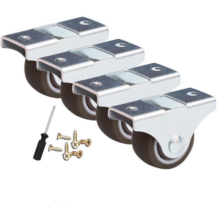 Design : les roulettes à profil bas adoptent un montage latéral, peuvent être fixées sur le côté du meuble avec des vis, facile à installer. HOMCOM Desserte Cuisine, desserte à roulettes avec tiroir, 4 paniers et Nous nous engageons à prolonger la durée de vie de ces petites roulettes. Contenu : Lot de 4 roulettes de 2,5 cm, 16 vis ; Ces roulettes latérales en forme de L sont parfaites pour les petits projets de bricolage, les berceaux, les meubles, les armoires, etc., adaptées aux types de sols Matériau : les petites roues sont fabriquées en caoutchouc, un matériau qui protège les sols avec des caractéristiques solides, silencieuses et fluides. Largement utilisé : convient pour les petits meubles, les boîtes de rangement, les plateaux, les tiroirs ou les boîtes de rangement sous le lit. Fonctionnement fluide et silencieux – Les roulettes en caoutchouc nylon de haute qualité assurent un coulissement silencieux et sans frottement pour une ouverture et une fermeture de porte sans effort.Robustesse et capacité de charge – Les roulettes inférieures robustes supportent le poids des portes, tandis que les roulettes de pied offrent une stabilité accrue.Contrôle précis et... Support métallique : le support de roulettes latérales est fabriqué en acier, forte capacité de charge, placage de surface lisse et beau. 4 petites roulettes latérales Montage : montage latéral. Lot De 4 Roulettes 4 Pcs Petites Roulettes Pour Meubles 32mm Roulette Pivotante Pour Table Petites Roues Latérales 2.5 Cm