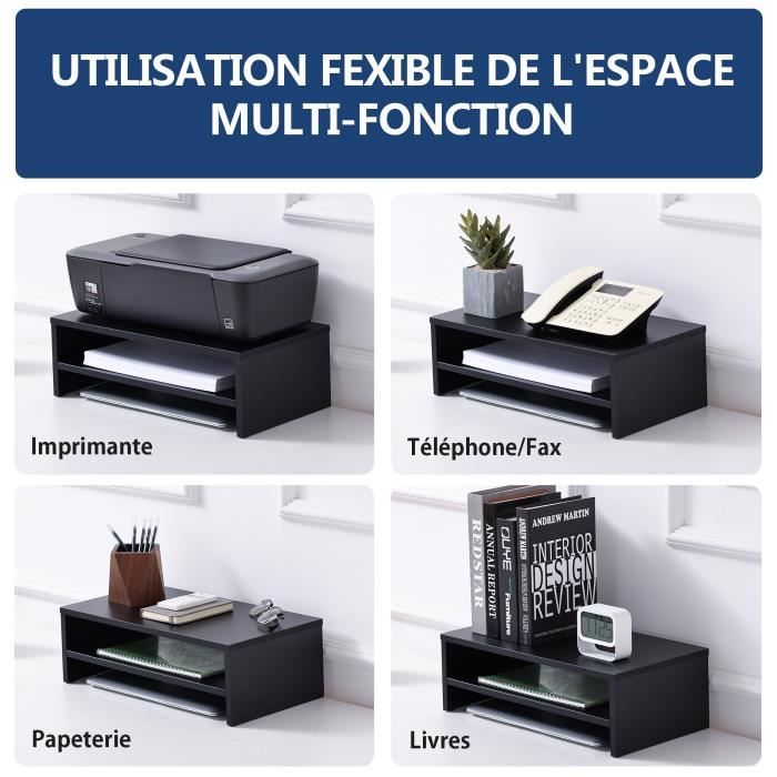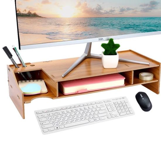 Sa fonctionnalité multifonctionnelle fait de lui une pièce indispensable pour votre bureau. Support de Moniteur en Bois, Réhausseur d'Écran d'Ordinateur Support de moniteur - Réhausseur d'écran 50x27x10 cm Bois de pin solide BV992924 Ce support d'écran offre plus d'espace et une belle apparence pour votre bureau, chambre à coucher, salle d'étude. Compatibilité: Notre support de moniteur en bois se distingue par sa compatibilité universelle. Le support de rangement sert non seulement à surélever le support de moniteur, mais aussi à organiser votre bureau., Gain de place. Décoration d'intérieur. Il vous aide à garder votre bureau dégagé et à organiser vos accessoires de manière plus rationnelle. Haute qualité. Support Moniteur Double ZYFAB Bois Support De Moniteur Riser, Ordinateur Réhausseur D'écran Support De Bureau Bois Réhausseur Moniteur Pour PC TV écran Support Pour Réhausseur,Marron,60 * 20cm Support Moniteur écran Il facilite ainsi une posture de vision optimale, réduisant considérablement la fatigue oculaire et les tensions cervicales. Réduisez la fatigue avec le support d'écran d'ordinateur ajustable de Vinsetto, extensible de 80 à 117 cm. Modulable, il inclut trois compartiments ouverts pour un accès facile aux fournitures, optimisant l'espace de travail Le rehausseur ecran pc bureau est disponible en trois couleurs distinctes: Blanc violacé, Noir et Couleur bois. Il libère efficacement de l'espace sur votre bureau et contribue à une organisation plus ordonnée de votre espace de travail. Disponible en blanc, noir et bois. En effet, il favorise un alignement naturel de la colonne vertébrale et une meilleure ergonomie lors du travail sur PC. Économise L'espace du Bureau: Au-delà de son aspect fonctionnel, le étagère moniteur est également un excellent outil de gestion de l'espace. Que vous utilisiez un PC, un ordinateur portable, il accueille idéalement vos appareils en toute sécurité. Cet accessoire incontournable résiste parfaitement au poids de vos écrans sans fléchir ni se déformer, assurant ainsi une longue durée de vie. Dimensions : 50 x 20 x 8 cm.