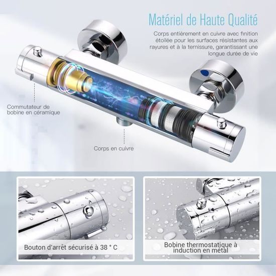 【Thermomètre de douche pour bébé】: L'affichage de la température de la douche peut afficher la température de l'eau en temps réel, lecture instantanée, et ne vous inquiétez jamais que votre bébé soit brûlé ou que l'eau soit froide. Robinetterie Salle De Bain - Colonnes De Douche & Mitigeurs – Agostini Optez pour notre thermomètre de douche digital. Se fixant directement au robinet, il permet de régler précisément la température de l'eau 【Interface standard à 】: Avec une conception d'interface standard à , le robinet de douche à affichage de la température peut être facilement installé sur la plupart des systèmes de douche, mettant à niveau facilement les systèmes existants sans aucun problème 【Matériau de qualité supérieure】: Ce thermomètre de bain pour bébé est fabriqué en PP de qualité, avec une structure légère, facile à utiliser et à installer Thermomètre de douche]: le thermomètre de douche peut afficher la température de l'eau en temps réel et prendre des mesures instantanées, de sorte que vous n'avez pas à vous soucier d'être brûlé ou l'eau froide 【Affichage de température innovant】: Cette douche dispose d'un affichage de température intégré qui surveille la température de l'eau en temps réel, garantissant que bébé, les personnes âgées et les femmes peuvent profiter d'une expérience de bain confortable et sûre Description: - 【Affichage de température innovant】: Cette douche dispose d'un affichage de température intégré qui surveille la température de l'eau en temps réel, garantissant que bébé, les personnes âgées et les femmes peuvent profiter d'une expérience de bain confortable et sûre - 【Thermomètre de douche pour bébé】: L'affichage de la température de la douche peut afficher la température de l'eau en temps réel, lecture instantanée, et ne vous inquiétez jamais que votre bébé soit brûlé ou que l'eau soit froide. Sécurité Bain Bébé Personnes âgées Kit De Robinetterie Avec Présentoir Pour Robinets De Salle De Bain Modèle Ross | Idéal Pour Robinet Salle Bain Avec Thermomètre