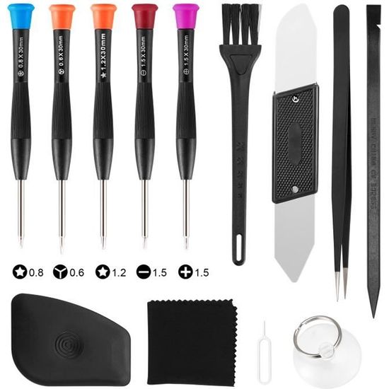 Le kit de tournevis est conçu pour l'entretien de tous les ordinateurs portables courants, outil de réparation électronique pour iPhone X, iPhone 8, PC, ordinateur portable, MacBook, iPad, tablette, téléphone portable, PDA, lunettes, horloge, appareil photo et jouets électroniques. Jeu de tournevis de précision 12 en 1 avec embouts Torx et Phillips. Mini kit d'outils de réparation portable pour drones, montres et lunettes. Kit de tournevis de précision 12 en 1 conçu pour smartphones et tablettes, avec outils robustes en acier au carbone et embouts plats ), mais aussi pour le démontage et la réparation de petits appareils électroniques et autres outils (téléphones portables, appareils photo numériques, consoles de jeux Nintendo, montres, etc., )., Magnétiseur. 【Pratique】Kit d'outils de réparation de tournevis peut être utilisé dans une variété de situations pratiques pour réparer les ordinateurs portables, les appareils mobiles et d'autres objets de précision tels que les montres et les lunettes, etc. Matériau compact, poignée antistatique. Idéal pour la maison, le travail, la boutique, les voyages ou les achats. 【Haute Qualité】Ces embouts de tournevis precision durables sont en acier CRV dont la dureté peut atteindre jusqu'à HRC52 56 et garantissent une longue durée de vie. Nous avons analysons tous les produits en bricolage de la marque COLFULINE et trouvons les 19 meilleurs choix pour vous. Lisez l'avis COLFULINE avant d'acheter Si vous ressentez un magnétisme insuffisant, vous pouvez l'utiliser pour améliorer le magnétisme. Kit de réparation de tournevis magnétique de précision Tournevis Facom 33 En 1 Tournevis De Precision,Kit De Tournevis Multi Fonction Kit Réparation électronique 【Multifonction】 Le kit de tournevis de precision contient 121 pièces et est conçu pour l'entretien de tous les ordinateurs portables courants ainsi que des outils de réparation pour l'électronique pour iPhone X, iPhone 8, PC, ordinateur portable, Macbook, iPad, tablette, téléphone portable, PDA, lunettes, montre, appareil photo et jouets électroniques. Tige d'extension Si vous fixez votre appareil à un endroit mais ne pouvez pas le toucher, il suffit de le glisser sous la poignée et de le laisser vous aider grâce à la tige d'extension. Design humanisé Il est livré avec des rallonges souples et rigides pour les coins étroits. Avec le tapis de rangement magnétique pour vis vous pouvez installer des vis après le retrait. Empêchez la vis de tomber de l'établi et de provoquer des fuites.