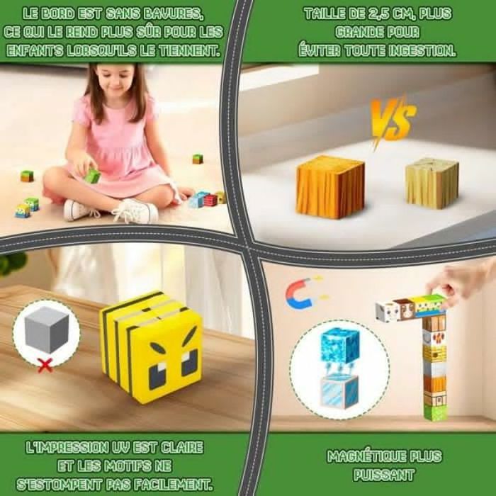 Matériaux de qualité supérieure : Chaque bloc magnetique enfant est fabriqué à partir de matériaux de haute qualité avec une finition lisse et sans bavures. Cet ensemble de 200 pièces de Construction Magnetique Enfant tourne autour du thème chaleureux de la grange et comprend une variété de fleurs, darbres, de maisonnettes forestières, de cascades et dadorables animaux comme des poussins et des veaux Ce set de 200 bloc de construction magnétique sur le thème des châteaux de glace comprend des blocs magnétiques de 2,5 cm présentant des éléments de décor finement détaillés. Cela offre aux enfants une expérience créative fiable et captivante. Présentés dans un emballage élégant, ils constituent une délicieuse surprise pour les occasions spéciales telles que Noël, les anniversaires ou la fête des enfants. Le cadeau idéal : Ces magnetic building blocks sont le cadeau parfait pour les garçons comme pour les filles ! Une créativité sans limites : Jeu de construction magnétique avec des éléments tels que des flocons de neige, des bonhommes de neige, des rennes, des princesses, des chevaliers et des châteaux, ces blocs magnétiques stimulent l'imagination des enfants et leur permettent d'exprimer librement leurs talents de constructeurs. Blocs Aimantés Enfants 6-10 Ans Blocs Magnétiques Construction 102 Pièces - Jeu Aimants Enfant 6-10 Ans - Éducatif Créatif Cube Magnétique Il permet véritablement aux enfants de grandir en jouant et d'acquérir des connaissances par l'exploration ! Les enfants peuvent construire librement leur monde enneigé idéal tout en apprenant par l'exploration ! Le jeu les aide à saisir les concepts spatiaux, stimule leur imagination et affine leur motricité fine, tout en nourrissant subtilement leur créativité. YADODO 120 Pièces Bloc Construction Magnetique Enfant Montessori 3a... Jeu Construction Enfant Blocs De Construction Magnétiques Jeux De Construction Aimanté Pour Enfants Jeu Jouets Créatifs 83 Pièces Aimantés - Jeux & Jouets Blocs De Construction Magnétiques Thème Hiver Créez des constructions magnétiques sur mesure sur les tables ou les portes de réfrigérateur, et laissez la créativité s'épanouir dans tous les coins de la maison.