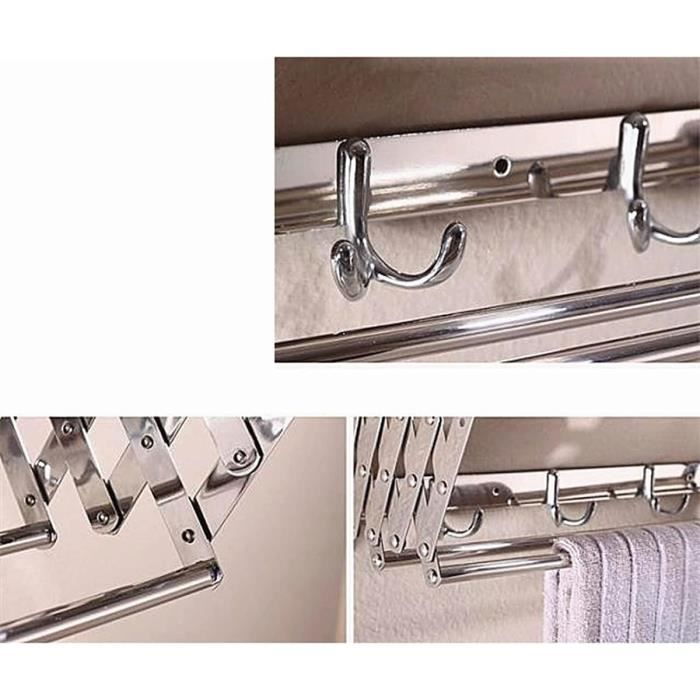 Design Extensible et Pliable – S’étend de 43 à 80 cm et se replie contre le mur pour économiser de l’espace. SpécificationsMatériau: Acier InoxydableCouleur: ArgentTaille: 41×15×4cmRoulement de charge maximum: 80 LBS Polyvalent et Pratique – 7 barres offrent un espace de séchage généreux pour vêtements, serviettes, accessoires. Étendoir à Linge Rétractable Séchoir Linge Mural en Aluminium Sèche Idéal pour salle de bain, balcon, buanderie. Séchoir Extensible Mural, Etendoir à Linge Etendoir Mural Pliable Séchoir Mural Extérieur Séchoir à Linge Mural Extensible - 4 Barres - 50x25cm - Acier Inoxydable Blanc Etendoir Linge Interieur Mural Support Serviette Extensible Foxydry Fold, Étendoir À Linge Mural, Extensible Vertical, Pliable Pour...