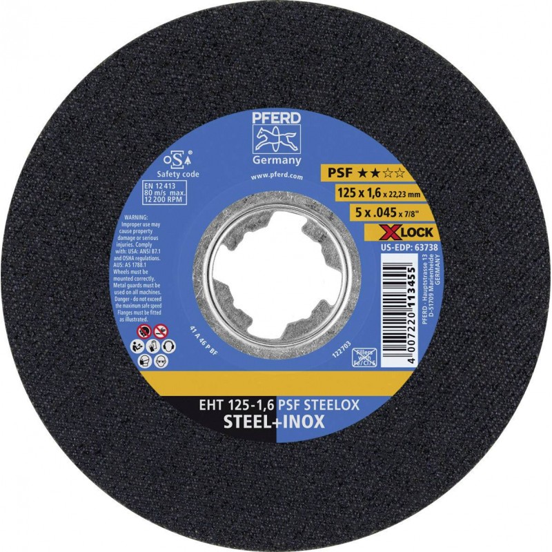 Disque Tronconner 125 Metal 1mm Disque à Tronçonner Pour Aciers Et Inox 125 X 1,6 Mm Sg Steelox SG-PLUS PFERD 54212526 Disques à Tronçonner Pferd Trennscheibe EHT 125-1,6 SG INOX, VE: 25 Stück, 61341124, 4007220095898 Trennscheibe für Edelstahl (INOX) mit hoher Trennleistung und höchster Standzeit Kit Block 4 100 Discos De Corte Sg Steelox Eht 125-1 0 Pferd | Leroy Merlin PFERD 61341124 PFERD EHT 125-1,6 SG INOX 61341124 Lot de 25 disques à tronçonner droits en acier inoxydable durables et robustes 125 mm Disque à tronçonner PFERD EHT - PSF STEELOX / X-LOCK - extérieur 115 et 125 mm - système de