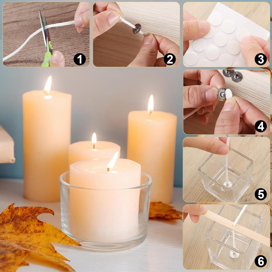 Mèches Bougies DIY 6100cm ALLAVA Lot De 100 Mèches De Bougie Pour Bougies, 12 Cm, Avec Support De Mèche En Bois, Coton Biologique Naturel, Pré-ciré Avec Cire De Soja, Mèches Pour La Fabrication De Bougies Cire De Soja Pour Bougie et différentes occasions telles que les mariages, Pâques ou baptêmes. MECHE POUR BOUGIE,Awl Ensemble de mèches de bougie en coton ciré avec... Nos mèches sont adaptées à tous types de bougies : moulées, coulées ou votives, et peuvent être utilisées avec des cires végétales ou minérales comme la cire de soja, de colza ou de paraffine Choisissez notre mèche de bougie Aililong pour vos bougies et profitez d'un produit de qualité supérieure et respectueux de l'environnement. - Un ensemble complet et de haute qualité avec 1 rouleau de mèche de bougie, 100 bases métalliques, 5 tiges en bois et 5 supports Mèches De Bougie En Coton 2.6-20cm, 50/100 Pièces, Fabrication De Convient pour différents types de cire comme la paraffine, la cire d'abeille, la cire de soja, etc. Nos mèches de bougie sont fabriquées en matériau de qualité supérieure et brûlent lentement et uniformément. Il est robuste et facile à manipuler. Avec les mèches de bougie Aililong pour bougies, vous pouvez fabriquer vous-même vos propres bougies ou réparer facilement des bougies existantes. Vous pouvez acheter notre mèche de bougie directement en ligne et la recevoir en peu de temps. Rouleau de mèche de bougie de 6 100 cm de long, parfait pour la fabrication de bougies courtes et épaisses d'un diamètre inférieur à 11 cm. Avec nos mèches, vos bougies n'ont pas de limites. Que vous ayez besoin de mèches de bougie pour bougies épaisses ou pour couler des bougies, notre mèche de bougie Aililong est le bon choix.