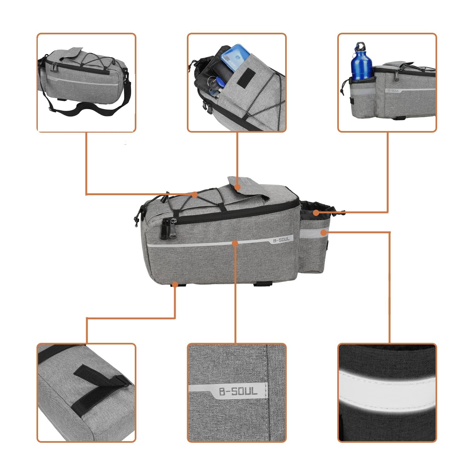 Contenu de l'emballage : 1 sac. *Sûr : le sac dispose d'une bande réfléchissante et d'un triangle réfléchissant pour une conduite sûre la nuit. Test sac de rangement CABALAY 12 L : étanche et réfléchissant pour vélo De nombreuses sacoches de vélo sont fabriquées à partir de matériaux imperméables ou sont équipées de housses imperméables amovibles pour protéger leur contenu de l'humidité Système de montage à dégagement rapide : deux bandes de fixation tactiles en bas offrent une fixation sûre au porte-bagages arrière de votre vélo. Panier-sacoche vélo,sac arrière de vélo réfléchissant imperméable,sacoches de selle,sacoches de S'installe ou se retire en quelques secondes sans outils tout en maintenant la stabilité même sur les terrains accidentés. Caractéristiques de sécurité réfléchissantes : équipé de bandes réfléchissantes et d'un réflecteur triangulaire qui améliorent la visibilité des véhicules dans des conditions de faible luminosité, aidant à augmenter votre sécurité pendant les trajets du soir ou tôt le matin. Sacoche Pour Porte Bagage Vélo Sacoche De Vélo étanche, Sac De Rangement Pour Porte-bagages Arrière De Vélo Avec Sangle Réfléchissante, Grande Capacité De 25 à 45 L, Sac De Porte Bagage Vélo Decathlon * Taille et capacité : avec des dimensions du sac de siège arrière de 30 x 19,5 x 14 cm, les sacs ont une capacité de 6 L. * Système de fixation à dégagement rapide : il y a 2 bandes de fixation tactiles au bas de ce sac, fixation stable sur le siège arrière du vélo. * Pratique : notre sac avec double chaîne + rabat design, vous aurez un accès facile aux choses.
