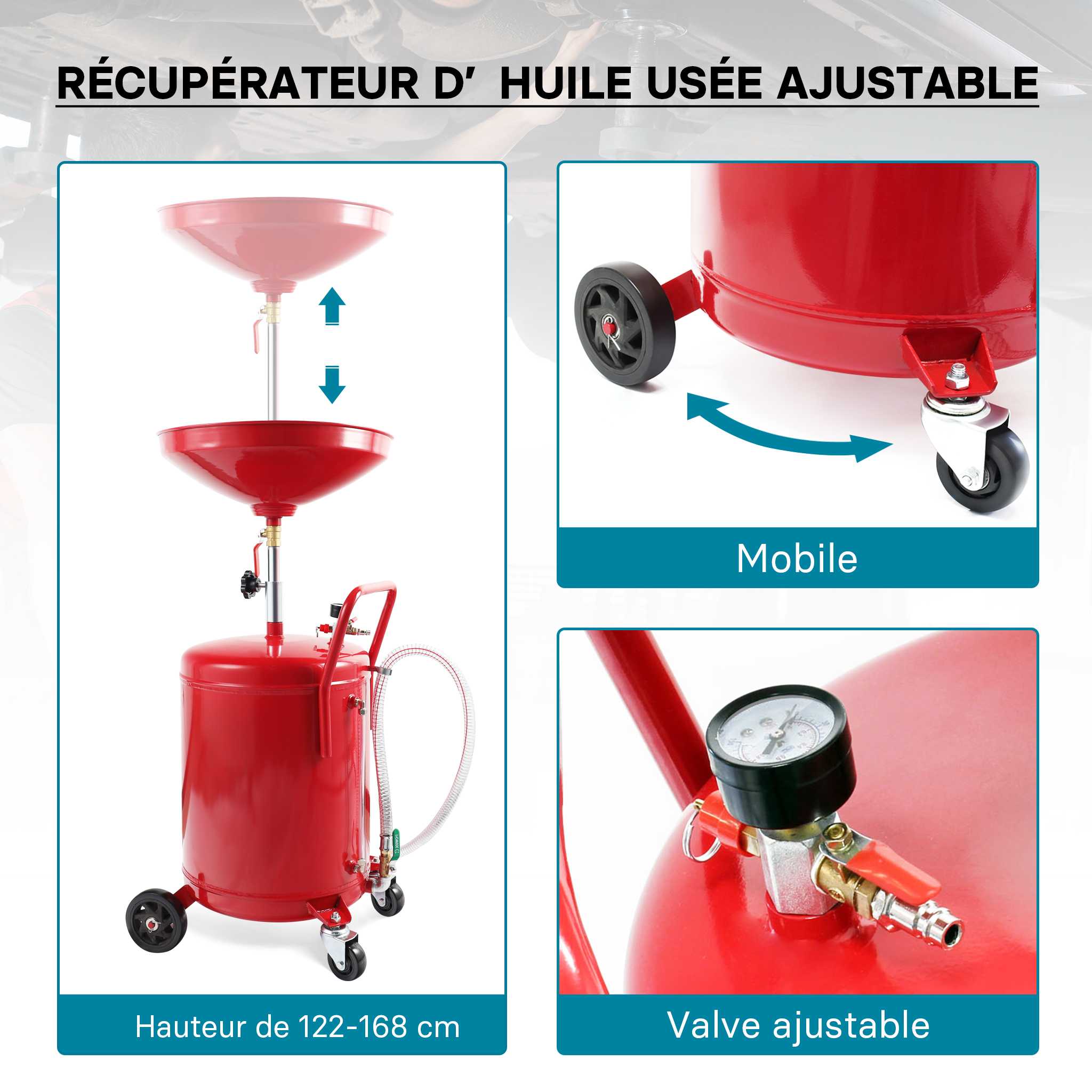 Pression nominale de la soupape de sécurité : 0,4 MPa Pression d'air de service : 0,8-1 MPa. Traitement de surface : seringues en plastique seringues en plastique Type d'installation : pose au sol., Assemblage requis : oui. 1 manuel d'utilisation en anglais. Dimensions du produit (L x H) : 20 x 45 cm. Capacité du verre doseur : 10 litres. Comment poser un regard eaux usées Collecteur d'huiles usagées industriels Contenu : 1 réservoir d'huile usée., 1 verre doseur., 1 compartiment de rangement., 4 roues., 1 tuyau de vidange., 5 tuyaux d'aspiration., 1 poignée., 1 poignée. Grâce à la vanne à bille et au manomètre précis, l'alimentation en air peut être efficacement contrôlée et la pression de travail peut être surveillée, évitant ainsi les risques de sécurité causés par la surpression et assurant la sécurité des opérateurs. Autres accessoires nécessaires au montage. Dimensions de l'emballage : 54 x 29 x 28 cm. Recuperateur D Huile De Vidange KumuJ Ru00e9servoir D'huile Usagu00e9e, 75 L, Pour Vidange D'huile, Appareil D'aspiration Mobile, Pour Chariot De Collecte D'huile, Appareil D'aspiration D'huile Usagu00e9e, Appareil D'aspiration D' huile Usagu00e9e Bac De Réhabltaton d’un réseau d’eaux usées par chemsage - Parte 1 - YouTube Dimensions du compartiment de rangement (L x l) : 21,5 x 12 cm. Matériau : tôle laminée à froid, acier, tôle laminée à froid PC, acier, PC. Taille du fond du produit : 46 x 45 cm. Caractéristiques : Style : moderne., Coloris : gris. Entonnoir réglable en hauteur : 20-30 cm. Haute efficacité : avec le principe de fonctionnement pneumatique et le gobelet doseur sous vide, il peut pomper, connecter et vider rapidement l'huile usée du moteur de la voiture en 3 minutes, ce qui réduit considérablement le temps de changement d'huile et améliore l'efficacité du travail.