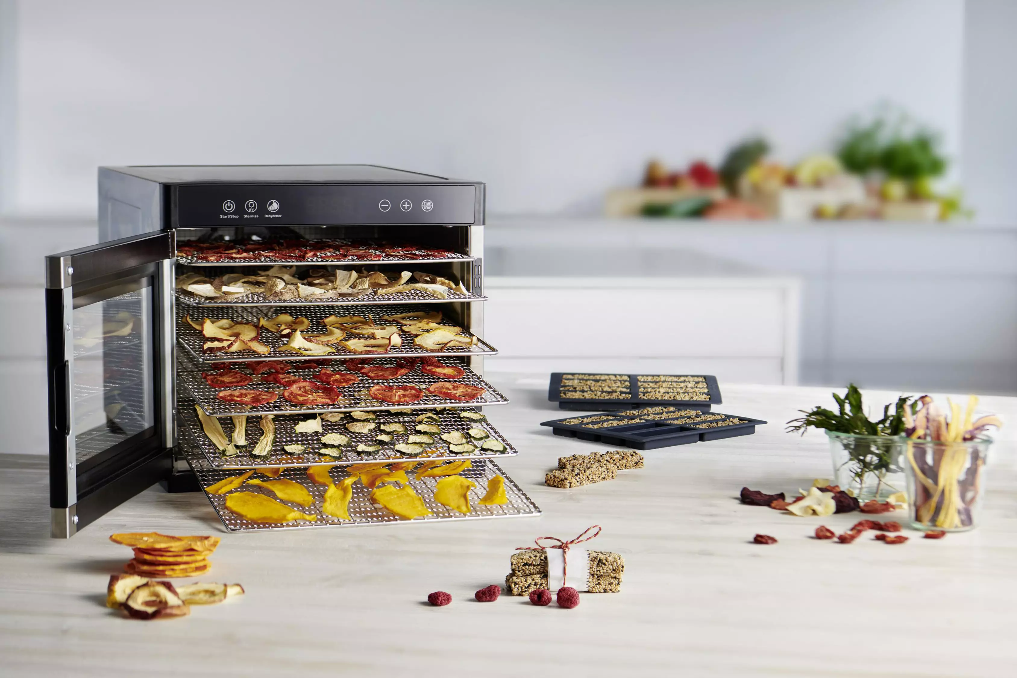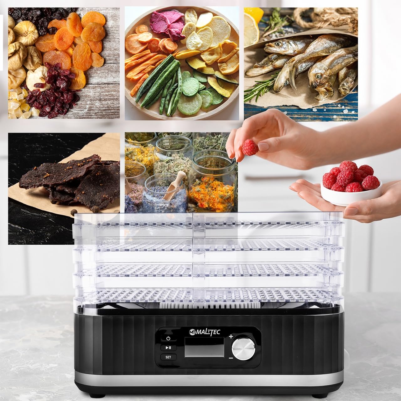 Les tamis sont réglés à 180 degrés par rotation horizontale. Augmentez la capacité de votre déshydrateur. L'ensemble augmente la capacité de votre sèche-linge de 9,6 l supplémentaires. Dimensions d'une pièce : 31,5 x 25,0 x 3,5 cm Grâce à la conception double face des bols, la distance entre les sept peut être ajustée. Freeze Dryer Déshydrateur Automatique Pour Champignons, Fruits Et Légumes | 450 W Déshydratation Fruits Légumes Séchage : les tamis sont espacés les uns des autres. Les tamis 100 % transparents permettent d'observer le processus de séchage sans avoir à ouvrir le couvercle et à perdre de la chaleur. Capacité d'une passoire : 2,4 l. Caractéristiques les plus importantes : ➡️ Lot de 4 - Double face - Séchage de grandes quantités d'aliments à la fois - Les tamis 100 % transparents permettent d'observer le processus de séchage sans avoir à ouvrir le couvercle et à perdre de la chaleur - Circulation de l'air libre entre tous les étages grâce aux ouvertures - Produits séchés efficacement et uniformément. Déshydrateur Pour Fruits Alimentaires – Déshydrateur Électrique Pour... Lot de 4 pour sèche-linge MalTec et autres modèles avec des dimensions similaires. Grâce à cette solution, le stockage prend beaucoup moins de place. La distance intérieure entre les tamis est de 2,7 cm. Paramètres : Dimensions d'une pièce : 31,5 x 25,0 x 3,5 cm. Déshydrateur automatique d'aliments pour la maison... – Grandado Déshydrateur Alimentaire - Conservateur Alimentaire Électrique À Plusieurs Niveaux, Viande Ou ▶️ Stockage : étanche aux écrans empilés.