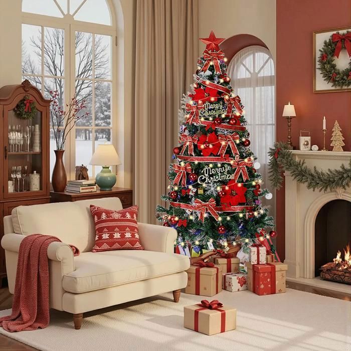 Elle s'éteint automatiquement après 6 heures de fonctionnement et reste éteinte pendant 18 heures. Doté d'ampoules LED 2700K, il continue de s'illuminer même si une ampoule grille, garantissant ainsi durabilité et longévité. Ce sapin de Noël pré-éclairé ne nécessite aucun nettoyage ni entretien, ce qui rend votre saison des fêtes sans stress. Les branches articulées se déplient facilement pour une présentation élégante en forme de paon Choisir un sapin de Noël artificiel réaliste permet de profiter de la beauté d’un arbre sans ses contraintes. Ce type de sapin imite fidèlement l’apparence des sapins naturels, tout en offrant une durabilité et une simplicité d’entretien [MATÉRIAUX DURABLES] Ce sapin de Noël est composé de pointes robustes, de haute qualité, hypoallergéniques et ignifuges. Arbre Lumineux Givré De 90cm, Arbres De Noël Artificiel Avec Base En Pot Vintage Arbres De Noel Floques De Neige Avec 78 Lumieres Led Avec Sapin De Noel A 8 Modes Et Fonction Minuterie 85225140 Des centaines de branches réalistes moulées individuellement créent une silhouette pleine et un aspect authentique. [ASSEMBLAGE FACILE] Utilisable en intérieur et en extérieur. Sapin De Noel Sapin De Noël Artificiel Avec 240 LED Et Baies Rouges | Sapins Sapin Avec Lumières Led Intégrées Le feuillage élégant en PVC non toxique crée une atmosphère enneigée, même si la météo n'annonce pas un Noël blanc. Garvee Sapin De Noël Artificiel, Arbre Artificiel avec 78 LED, Branches Réalistes, Baies Rouges, Flocon De Neige, pour Décoration Noël [MODES D'ÉCLAIRAGE MULTIPLES] Ce sapin de Noël de 90 cm est équipé d'un pack de piles (3 piles AA non incluses) et propose 8 modes d'éclairage : Combiné/Vague/Séquentiel/Clignotement lent/Poursuite/Fondu lent/Scintillement/Allumage continu.