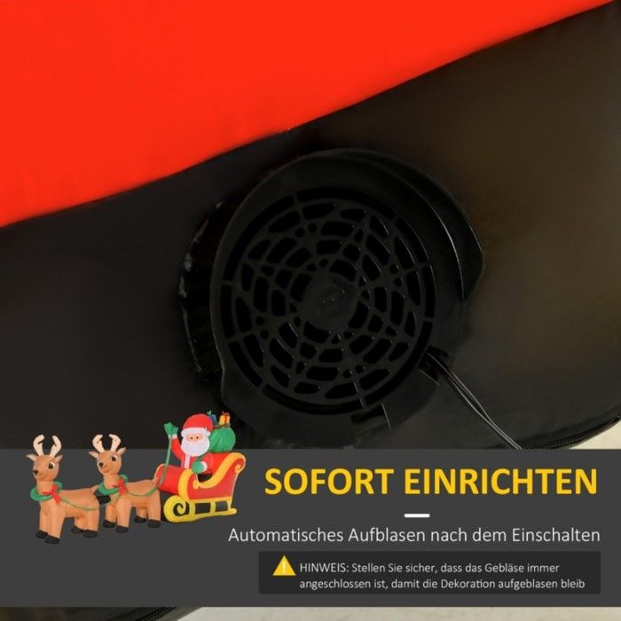 Décoration de Noël en polyester résistant à l'eau IP44, offrant une durabilité fiable par tous les temps Le souffleur intégré se gonfle rapidement, garantissant une installation simple et rapide Père Noël en Traîneau avec 3 Rennes Gonflable 310cm et LED - Décoration Noël Coloriage de Noël : Traîneau du Père Noël et rennes magiques Convient aux jardins et aux événements, diffusant la joie saisonnière à tous. Outsunny Tonnelle Tente Pavillon de Jardin Imperméable 4 Moustiquaires INSTALLATION FACILE ET AJUSTEMENT SÉCURISÉ : Installez facilement votre décoration gonflable de Noël grâce au souffleur fourni, et assurez sa stabilité avec huit piquets de terre, quatre amarres et quatre sacs de sable, pour une présentation extérieure impeccable. MATÉRIAU FIABLE : Fabriqué en tissu polyester résistant à l'eau, ce Père de Noël gonflable avec traîneau et rennes reste éclatant et charmant malgré la pluie et l'humidité, illuminant votre jardin de ses couleurs vives et de sa joie, saison après saison. Père Noël Qui Pète Qui Fait Des Bulles HOMCOM Traîneau à Rennes Avec Père Noël Gonflable 6 Lumières LED Décoration Noël Gonflable 1,12 M Usage Intérieur Extérieur Tissu Polyester Multicolore Decoration Noel Exterieur Renne Cette décoration de Noël gonflable comprend huit piquets de sol, quatre haubans et quatre sacs de sable, offrant une stabilité solide et constante Stabilité assurée contre vent et neige grâce aux piquets, attaches et sacs de sable inclus. Grand design de 2,4 mètres de long au Père Noël gonflable avec traîneau et rennes, devenant un point central éblouissant dans le jardin
