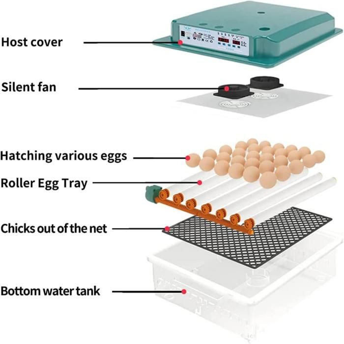 Humidification automatique: l'incubateur est équipé d'une base d'entrée d'eau automatique qui peut réaliser la fonction d'humidification automatique Retournement Automatique des Œufs: Une fois les deux couches de lignes de retournement des œufs connectées, la couveuse retourne automatiquement les œufs toutes les 90 minutes Convient aux œufs de volaille : l'espacement entre les rouleaux peut être ajusté. Eclosion Poule Caille Canard Couveuse Automatique Dural's DX5 - Professionnelle - Pour Œufs Poule, Caille, Canard - Retournement Auto Materiel Avicole Precis Lampe à oeufs: l'incubateur a une lampe à oeufs intégrée pour faciliter l'identification des oeufs fécondés et observer leur développement Comparez et évaluez les 10 meilleurs Couveuse Automatique 120 Oeufs pour 2025 sur . Découvrez les options les mieux notées avec des analyses détaillées pour vous aider à faire le meilleur choix Couveuse Automatique CoInceptus Couveuse Oeuf Automatique, Incubateur Oeuf Automatique 16 Oeufs Avec Retournement Automatique Des Oeufs Et Contru00f4le De L'humiditu00e9, Couveuse Pour Oeufs De Poule, Caille, Canard Incubateur Oeuf Poule Optez pour la couveuse automatique Cimuka. Ce modèle possède des panneaux double paroi haute isolation, des cornières en aluminium anodisé, une porte sur la face avant avec un large hublot de contrôle et une seconde porte sur la face arrière pour un nettoyage facile, rapide et intégral