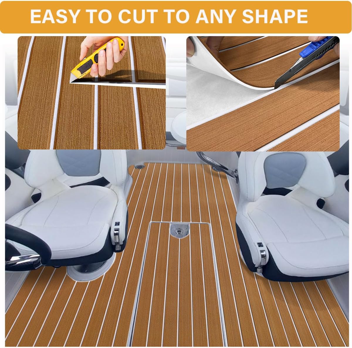 Il suffit de peler et d'insérer. Conçu avec de la mousse EVA de haute qualité, ce revêtement de sol présente des propriétés antidérapantes, résistantes à l'eau et à l'usure, garantissant une expérience de marche sûre et amortie, même dans des conditions humides Adhésif puissant à l'arrière., Exigences d'installation : 1., Assurez-vous que la zone de la planche est libre, non sale, pas d'huile, pas de cire et pas humide avant d'utiliser le produit., 2., Une fois l'installation terminée, les bords doivent être scellés avec du caoutchouc de silicone pour éviter que l'eau et la saleté ne pénètrent en dessous. Diverses utilisations : le tapis en teck EVA peut être facilement utilisé sur les yachts, les piscines, les véhicules de loisirs, les ponts de bateau, les bateaux rapides, les sols de bateaux, etc. Si elle est sale, il suffit de le nettoyer avec de l'eau ou un aspirateur très facile et permet de gagner du temps. Transmission, ce qui permet de ne pas affecter la température de la terrasse par des environnements difficiles et vous vous sentirez plus à l'aise. Facile à couper et à nettoyer : pour presque toutes les surfaces d'un bateau où la surface antidérapante ou la protection est nécessaire pour la surface des bottes. Revêtement de sol en mousse EVA imitation teck pou... – Grandado Cela permet au produit de durer plus longtemps. 240*90*0.6cm Faux Teck Pont EVA Mousse Bateau Tapis de sol Marine Brun Revêtement Sol Bateau Teck Synthétique Bateau Tapis De Pont Bateau En Mousse EVA 240x90cm - Antidérapant, Imperméable | Revêtement Sol Yacht, Camping-car Antidérapant Tapis De Sol Bateau Durable et absorbant les chocs : offre non seulement une surface de traction exceptionnelle, mais réduit également la fatigue causée par une position debout prolongée et un travail sur des terrasses et des plates-formes dures. Contenu : 1 tapis de sol pour bateau. Matériau de qualité supérieure : l'EVA a des avantages d'un bon amortissement, d'une résistance aux chocs, d'une isolation thermique, d'une résistance au glissement, d'une absorption des chocs, d'une étanchéité au sel. Résistance à l'humidité et à la corrosion chimique et est inodore, non toxique et non absorbant. Haute élasticité à la traction, pas facile à déformer, pas facile à déchirer ou à endommager, il est sûr et durable.