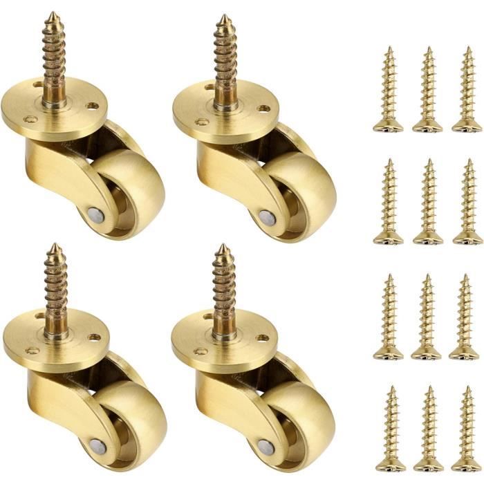 Rotation flexible : rouleau en laiton massif fabriqué avec précision, rotation à 360 degrés, mouvement libre et fonctionnement. Les roulements à billes sont silencieux et stables * Fonctionnement silencieux : conçues avec des roulements silencieux, ces roulettes offrent un mouvement fluide et silencieux, assurant un minimum de perturbation dans votre environnement de vie. Roulettes Charge Lourde Lot De 4 Roulettes En Laiton Massif, Roulette Pivotante Pour Meubles, Capacité De Charge 150 Kg, Avec Vis, Diamètre De Roue 25 Mm, Avec Tige Filetée Roulettes Meuble Silencieuses Caractéristiques : * Construction durable : fabriquées à partir de laiton massif avec une finition brossée, ces roulettes sont conçues pour résister à un usage quotidien tout en conservant leur attrait esthétique et leur intégrité structurelle. Fonctionnement silencieux : avec des roulements silencieux inclus, ces roulettes offrent une fonctionnalité fluide et silencieuse qui maintient votre environnement de vie paisible et intact. Capables de supporter de lourdes charges : conçues pour supporter un poids important, ces roulettes sont parfaites pour les applications lourdes telles que les canapés ou les pianos, combinant résistance et style. YMYNY 4pcs Roulettes de Meubles universelles en Laiton,roulettes en... Roulettes En Laiton Massif,Roulettes Pivotantes Pour Rétro Meubles,Capacité De Charge 100Kg *Utilisation polyvalente : parfaites pour divers petits meubles tels que les tables basses, les supports de plantes et les étagères, ces roulettes améliorent la mobilité dans les espaces restreints. * Taille : 62 x 42 x 28 mm (diamètre de la roue : 26 mm)., *Couleur : doré + noir. * Mobilité améliorée : la fonction de rotation à 360 degrés permet un mouvement sans effort dans n'importe quelle direction, ce qui facilite le repositionnement des meubles sans effort.