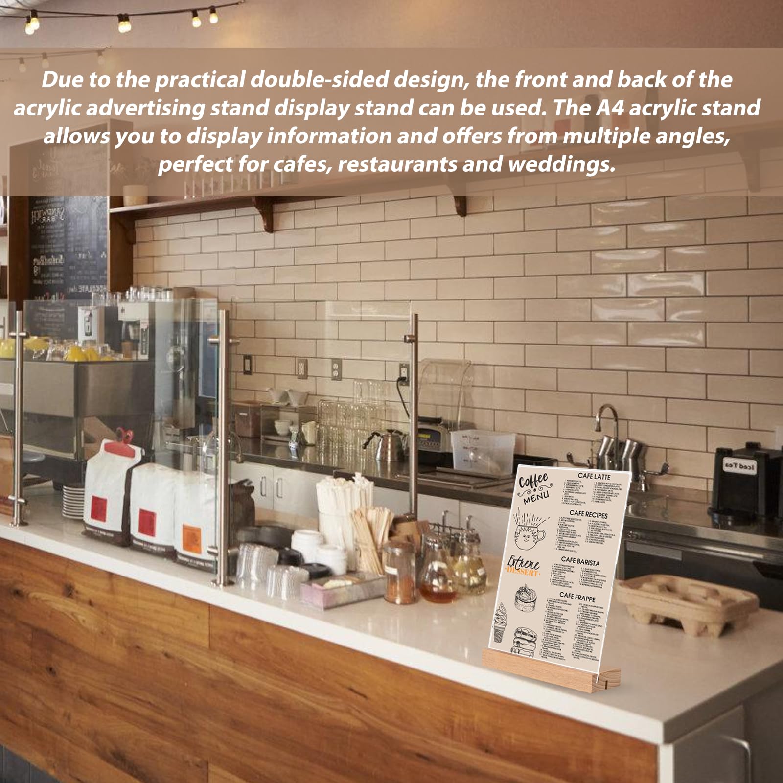 Facile à utiliser et à monter : les films de protection des deux côtés de la plaque acrylique sont facilement retirés avant utilisation. Base en aluminium A4 en forme de L, porte-étiquett... – Grandado VEGOATY - Lot de 3 présentoirs de table en acrylique - Format A4 - Avec base en bois - En forme de L - Pour affiches, dépliants, menus pour mariage, café, restaurant Présentoir de table A4 avec bois : Fabriqué en acrylique robuste et hautement transparent avec bords polis et coins arrondis pour une utilisation sûre. Le présentoir en acrylique offre donc non seulement un design sûr et élégant, mais aussi une protection fiable pour le contenu présenté. La base en bois robuste combinée à la lèvre en silicone offre un maintien supplémentaire et empêche le basculement, même en cas de changement d'emplacement ou de contact fréquent. La combinaison d'une finition précise et d'une construction conviviale facilite l'utilisation pour différentes occasions Sûr et stable pour différentes utilisations : le présentoir de table en acrylique A4 convient non seulement pour les restaurants et les cafés, mais aussi pour les bureaux, les foires, les écoles ou les mariages. Présentoir Forme Rectangulaire Artisanat De Plantes Support Durable... Caractéristiques : Couleur : transparent. Présentoir double fente en Bois Porte-affiche Table Transparent Présentoir A4 Presentoir A4 Acrylique Avec Base En Bois, Lot De 3 Porte Menu Porte Affiche Porte Document Mariage Pour 823576 Présentoir Recto Verso Mariage Café Restaurant Ensuite, l'insert est légèrement inséré dans le présentoir de table en acrylique A4 et la bande en silicone fixe la position. Épaisseur acrylique : environ 2 mm environ. En raison des effets de l'éclairage pendant la prise de vue et des différents réglages de l'écran, les couleurs du produit sur l'image peuvent différer légèrement de la couleur du produit livré. Les bords lisses et polis et le processus de coupe précis assurent un aspect élégant, tandis que la base en bois de hêtre stable et la bande en silicone fixent la plaque en toute sécurité et la protègent contre le glissement. La disposition inclinée sur la base en bois robuste garantit une lisibilité parfaite sous différents angles, aussi bien pour les clients que pour les invités.