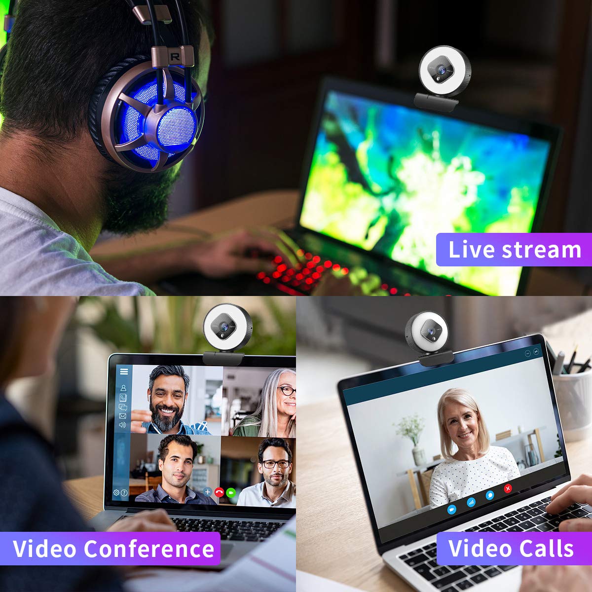 【Qualité vidéo Full HD cristalline】Capteur CMOS 2MP + ouverture F2., 5 + grand angle 89° + 60FPS pour des images fluides et ultra‑nettes – idéal pour les appels vidéo, le streaming et l’enseignement en ligne. Webcam Gaming 1080P 60FPS avec Anneau Lumineux RGB, Caméra PC de Streaming avec Autofocus, Double Microphone, éclairage LED Intégré, USB2.0 Plug & Play pour PC, Mac, Laptop et Tablette Description du produit Systèmes pris en charge Pour Windows XP/ VISTA/ Win7/ Win8/ Win10/ Win11/Win12 Pour Linux 2., 6., 24 et versions ultérieures Pour Ubuntu 14., 04 et versions ultérieures Pour Mac OS 10., 6 et versions ultérieures Mémorise votre dernier réglage même après extinction. Clip robuste pivotant à 360° et filetage 1/4″ pour trépied. 【Cache de confidentialité magnétique + synchronisation de la lumière】Le cache intégré coupe instantanément la caméra et l’éclairage. Le débit élevé garantit un audio et une vidéo fluides, l’alimentation se fait directement par le port USB, sans source d’alimentation externe nécessaire. Webcam 1080p 60fps avec double microphones stéréo,caméra full hd usb Vous bénéficiez ainsi d’une stabilité optimale et de possibilités de positionnement variées, idéales pour l’enregistrement, le streaming ou les visioconférences. USB Plug & Play Branchez simplement la webcam via USB 2., 0 elle est immédiatement reconnue sans aucun pilote à installer. Support professionnel pour trépied Équipée d’un filetage 1/4″ standard, la webcam se monte en quelques secondes sur n’importe quel trépied du commerce. Webcam USB Full HD avec autofocus, double micro intégré et anneau d... Webcam 1080p Avec Microphone Webcam 1080P 60FPS Avec Microphone, Anneau Lneux, Autofocus Webcam 60fps Avec Micro La rotule à 360° s’adapte à l’épaisseur de votre écran tout en assurant une tenue parfaite.