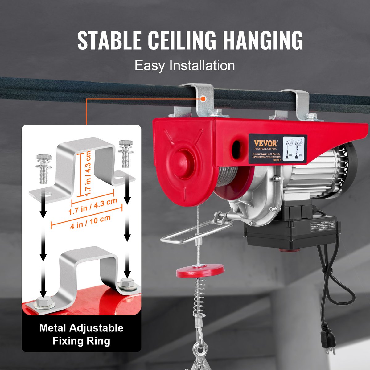 [Large application] Le treuil électrique portable est une excellente solution pour le levage et le remorquage d'équipements, idéal pour les applications intérieures et extérieures. Structure préciseUn câble métallique en acier galvanisé de qualité aérospatiale de 7,6 m est utilisé. Il peut soulever en toute sécurité des charges lourdes sur les lieux de travail industriels. [Traqbar & Pratique] L'engrenage léger en aluminium et la poignée ergonomique en caoutchouc rendent le treuil particulièrement maniable et facile à utiliser. Différents modes de commande qui le rendent adapté à une variété de besoins de levage. VEVOR Palan à Câble Électrique Palan Électrique Treuil-Palan Bras Il est largement utilisé dans les machines, l'industrie, l'automobile, la construction et d'autres domaines. [Sécurité accrue] Le treuil électrique est équipé d'un interrupteur de fin de course infrarouge moderne qui arrête automatiquement le fonctionnement dès que la charge se trouve à 5 cm devant la base de la machine. Il permet de soulever des charges allant jusqu'à 498,95 kg grâce à son moteur de 1500 W et son câble métallique de qualité aérospatiale. Avec des options de contrôle manuel, filaire et sans fil, il est conçu pour être utilisé facilement, que ce soit à l'intérieur ou à l'extérieur Treuil électrique 3 En 1 Treuil à Câble Électrique 600 Kg Palan Électrique Avec Télécommande Sans Fil 1150 W Treuil-Palan 10 M/min Hauteur De Levage Câble Simple 12 M Moteur Pour Garages Entrepôts Usines | FR 1000 Kg Nous fournissons une sangle de levage et un support de fixation pour aider à fixer le palan et les objets soulevés. SpécificationsPoids maximal de la charge : 300 kgDiamètre du câble métallique : 6 mm, longueur du câble métallique : 7,5 mPuissance du moteur : 1500 WMatériau du crochet : acier au manganèseMatériau du boîtier de vitesses : aluminiumMatériau du câble métallique en acier : câble métallique en acier galvaniséMoteur : moteur en cuivre pur Caractéristiques de sécurité améliorées : notre câble électrique est équipé d'un nouvel interrupteur de fin de course infrarouge qui arrête automatiquement le fonctionnement lorsque la charge est à seulement 5 cm de la base de la machine [Treuil électrique 3 en 1] offre 3 méthodes de contrôle : contrôle manuel, télécommande sans fil et télécommande filaire. Il peut non seulement soulever des marchandises, mais aussi les remorquer horizontalement. Moteur puissant de 1500 WCe treuil électrique est équipé d'un moteur puissant qui génère une puissance de 1500 W pour soulever automatiquement et rapidement des charges lourdes. Qu'il s'agisse de jardiniers amateurs ou professionnels, il permet d'effectuer des tâches difficiles et peut être facilement transporté et rangé.