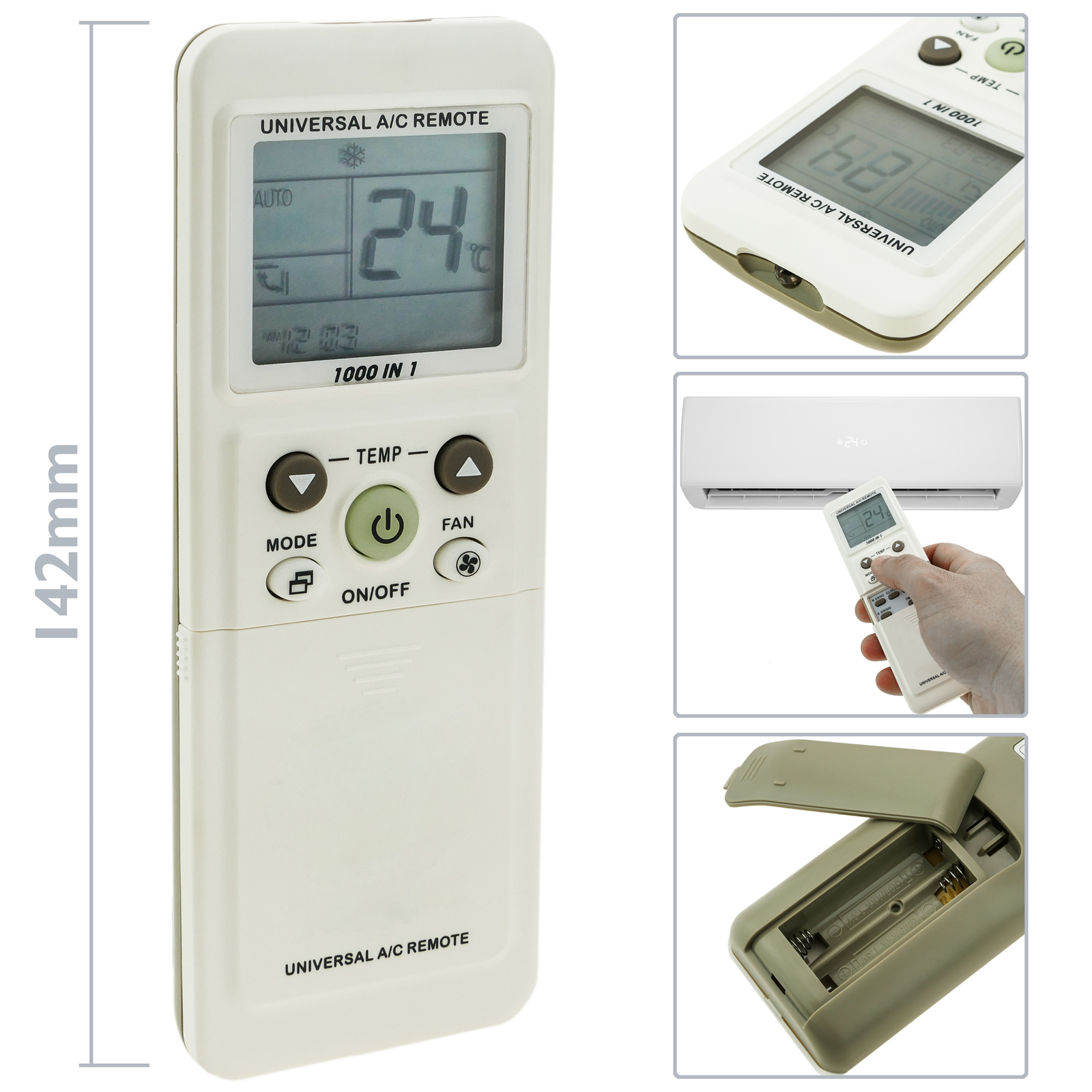 Il fonctionne avec deux piles AAA (non fournies). Il est fourni avec des jeux de commandes prédéfinis compatibles avec la plupart des fabricants du marché, bien qu'il soit également possible de programmer votre jeu de commandes personnalisé pour votre équipement. Il dispose d'une visionneuse LCD qui indique l'état, les fonctions et d'autres détails de la télécommande. Telecommande Universelle Clim La Télécommande Universelle Pour Climatiseur TASAKI Télécommande Programmable LCD Télécommande infrarouge universelle idéale pour remplacer les commandes endommagées ou perdues. Spécialement conçu pour les machines de climatisation et de chauffage avec récepteur infrarouge. Il intègre plus de 508 modèles de climatisation de 100 marques différentes dans une seule télécommande Bematik - Mando A Distancia Universal. Control Remoto Para Aire Acondicionado, Calefacción Y Utile pour concentrer les différentes télécommandes en une.