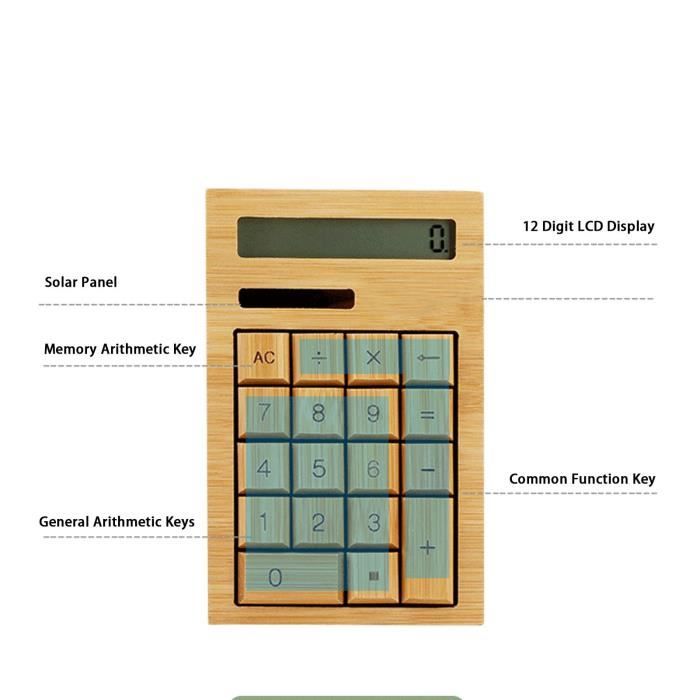 Calculette écologique Avec Double Alimentation GONNELY Calculatrice à énergie Solaire - Calculatrice En Bois Calculette Solaire écologique Il convient à une utilisation dans les maisons, les bureaux, les écoles et les magasins de détail. La calculatrice multifonctionnelle est un appareil pratique et multifonctionnel qui peut être utilisé aussi bien à la maison qu'au bureau. Avec ses diverses fonctions arithmétiques et fonctionnalités utiles, c'est un outil indispensable pour quiconque a besoin d'effectuer des calculs rapides et précis Calculatrice solaire : calculatrice, solaire, chiffres – Les meilleurs produits Nous vous présentons ci-dessous plusieurs modèles de Calculatrice solaire que vous pouvez acheter aujourd'hui sur Internet. Pour vous aider à faire votre choix, chaque produit est associé à ses caractéristiques principales 【Deux en un】 La calculatrice peut afficher 12 chiffres, l'écran est clair et ne blesse pas les yeux, ce qui est pratique pour la lecture longue distance. Il peut être utilisé comme un cadeau parfait. Calculatrice D'énergie Solaire En Bois – Calculatrice De Bureau A Fonction Standard Ecran Lcd Numerique 12 Bits Double Alimentation Pour Office Home Ecole 【Large utilisation】 Une calculatrice électronique portable avec des fonctions quotidiennes d'addition, de soustraction, de multiplication, de division et de retour arrière. Caractéristiques : 1., Bonnes performances, calculatrice de tablette fonctionnelle en bambou., 2., Grand écran à 12 chiffres, calculatrice de bureau. La calculatrice peut effectuer des calculs mathématiques courants et diverses fonctions de calcul financier, accélérer le traitement des calculs, vous aider à réduire les erreurs de calcul et améliorer la précision des calculs., 3., Bouton de grande valeur, confortable à appuyer, bonne sensation de main. et fournit 2 méthodes d'alimentation : solaire + batterie intégrée 4., Conception antidérapante, stable et antidérapante, équipée de 4 patins en caoutchouc en bas., 5., 2 modes d'alimentation : énergie solaire + batterie intégrée. La calculatrice peut afficher 12 chiffres, l'écran est clair et ne blesse pas les yeux, ce qui est pratique pour la lecture longue distance. Lorsque la lumière ambiante est intense, l'énergie solaire fournir de l'énergie. et fournit 2 méthodes d'alimentation : solaire + batterie intégrée. La calculatrice de tablette fonctionnelle en bambou a un toucher sensible et rapide, un angle confortable, un design ergonomique et de bonnes performances.