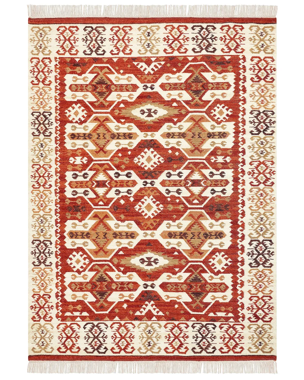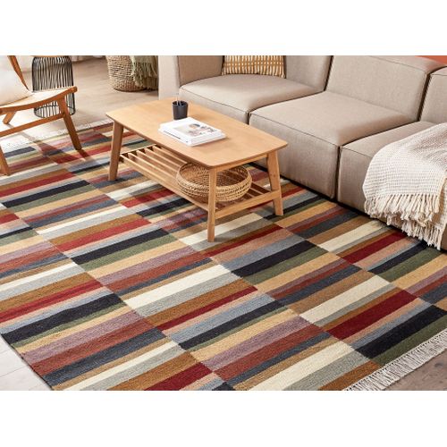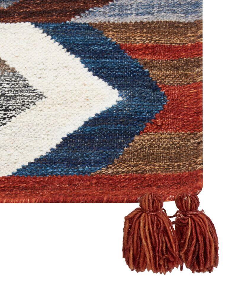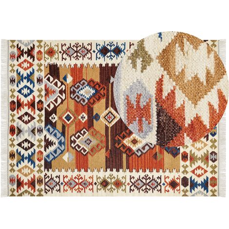 Les différences de couleur et de structure sont des preuves d’authenticité et sont en aucun cas considérés comme un défaut. Détails: Type de produit: Kilim Style: Boho Couleur principale: Multicolore Type de matière: Tissu Matière principale: Laine Matière secondaire: Coton Composition de la matière: 80% en laine Forme: Rectangulaire Fond anti-glisse: Non Grammage: 1400 g/m2 Motif: Motif oriental Convient avec le chauffage au sol: Oui Tissage: Fait à la main Dimensions: Hauteur du tapis: 1 cm Largeur: 200 cm Longueur: 300 cm Poids: 9 kg L`offre inclue: 1 x Tapis Caractéristiques clés: Fabriqué à la main avec le plus grand soin, Convient pour le chauffage par le sol, Solution parfaite pour la chambre et le salon, Un facteur de confort dans votre intérieur, De haute qualité Informations d`assemblage: Ne nécessite pas d'assemblage Informations supplémentaires: Le produit peut perdre des poils au fil du temps, Les couleurs, les motifs et les tailles (+/- 5-7 cm) peuvent différer de la photo, car chaque tapis est fait à la main. Le produit nécessite un certain temps après le déballage pour atteindre sa forme idéale. Tapis Kilim, fabriqué à la main à partir de matériaux de haute qualité - complément idéal pour votre espace quotidien Nous vous recommandons de le déplier dès que possible, de lui donner jusqu'à 72 heures pour se redresser, ainsi que de mettre un poids lourd sur les extrémités pour un meilleur rendu. Tapis Oriental Franges Tapis Kilim Multicolore En Laine 200 X 300 Cm Avec Frange Oriental Fait Main Vanashen 70170154 Carpette Salon Style Boho Tapis kilim en coton 140 x 200 cm multicolore NORATUS Les deux extrémités du tapis sont ornées de pompons décoratifs.