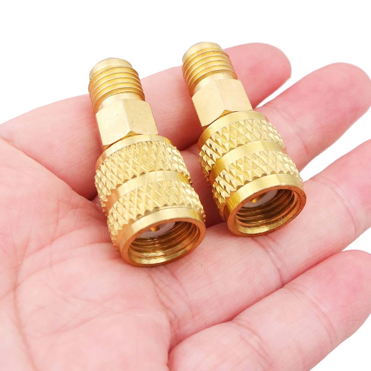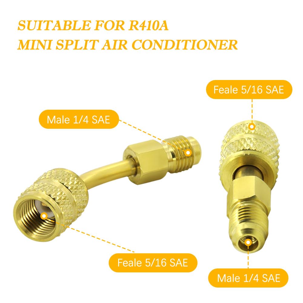 【et pratique】: fabriqué en matériau, cet adaptateur est pratique pour une utilisation à long terme. Construction solide et structure ergonomique pour une haute performance pendant le travail. Cet adaptateur est utilisé pour les adaptateurs en laiton automobiles. La couleur dorée ajoute une touche d'élégance à votre collection d'outils. Il est résistant à l'usure et maintient ses performances dans le temps, offrant fiabilité et longévité. Adaptateur Climatisation Auto Adaptateur 1/4 SAE Femelle Adaptateur De Raccord Droit 5/16 SAE Mâle Vers 1/4 SAE Femelle - Filetage Parfait Pour Vos Installations Hydrauliques Pièce Raccord Hydraulique Automobile Industrielle Raccord Rapide 1/4 Vers 5/16 【Fiable et sécurisé】 : avec son design d'entraînement de soupape, cet adaptateur élimine le risque de perte lors de l'utilisation. Emballage pratique : chaque achat comprend 2 adaptateurs, permettant de multiples applications ou une pièce de rechange. Types : filetage intérieur 5/16 filetage extérieur 1/4. 【Construction】: Fabriqué en laiton, cet adaptateur présente d'excellentes propriétés anti-âge. Cet adaptateur m'a été livré en 3 jours en colissimo. Ça m'a permis d'utiliser un manometre electonique bluetooth au bon moment. Satisfait du produit, du prix , de la rapidité et du suivi de la livraison et de decouvrir un nouveau fournisseur de confiance sur le web Caractéristiques : *Fabriqué en matériau et pratique à utiliser. Convient pour : adaptateur R410 mâle 1/4 SAE vers femelle 5/16 SAE Quantité : 2 pièces. Vous pouvez compter sur sa connexion sécurisée pour un processus de travail sûr et efficace. * Pour adaptateur R410 mâle 1/4 SAE vers femelle 5/16 SAE adaptateur. Adaptateur R410,R32 Mâle vers R134, R2, R407, etc. femelle R410A Vakuumpumpe Adapter Auto Klimaanlage Kältemittel Kupplung 1/4 M 5/16 F SAE Il dispose d'un adaptateur mâle 1/4 SAE vers femelle 5/16 SAE offrant un accès sûr et facile au système de valve même sous pression de fonctionnement.