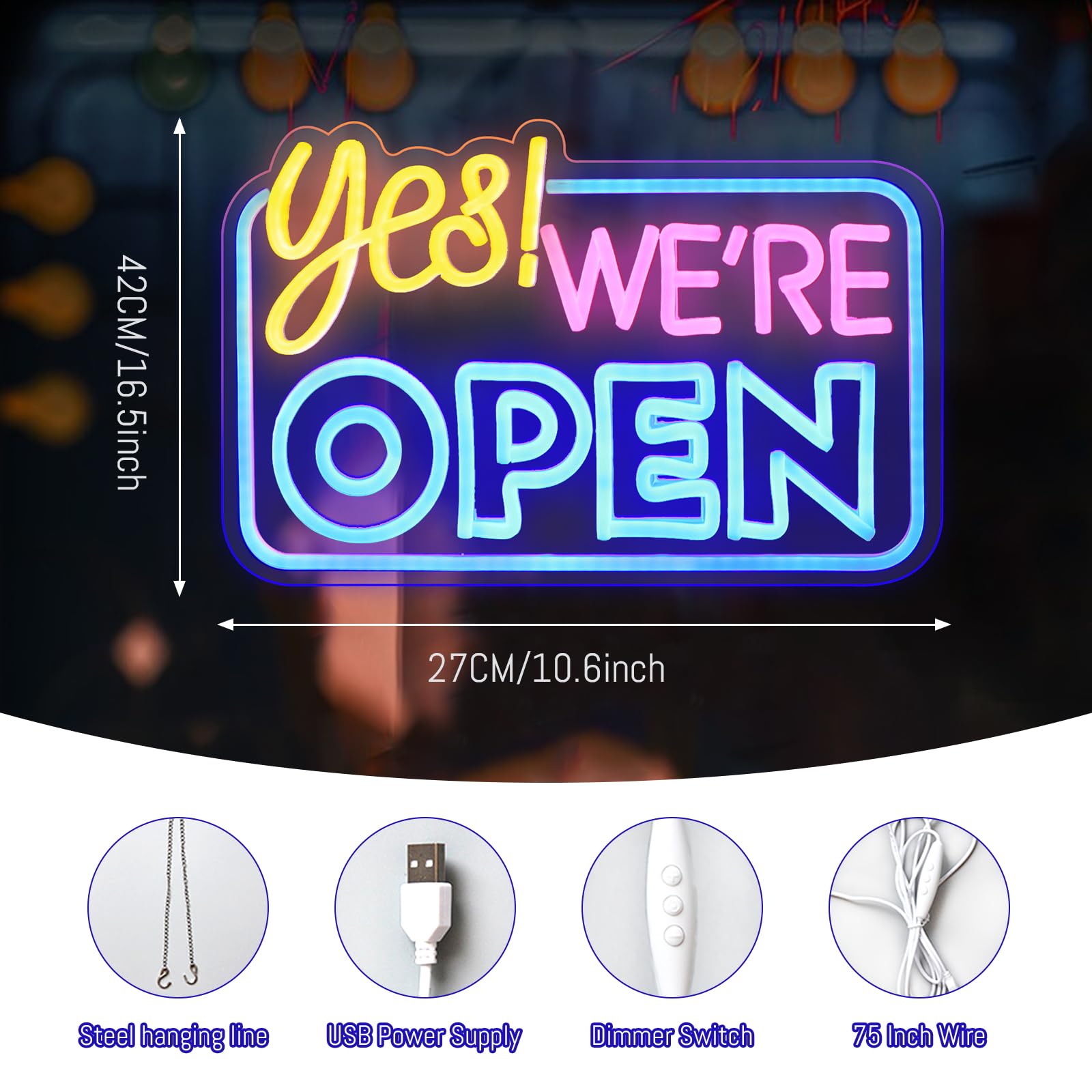 Produktbeschreibung - Einfach das beiliegende USB-Kabel anschließen und sofort beeindruckende Atmosphäre genießen. Open Signe Lumineux 43x23 Cm Yes We Are Open Neon Schild LED Open Neonlichter Für Wanddekoration Öffnen Schild Für Bier Bar Shop Kaffee Cafe Club Store Home Pub Restaurant Hotel Salon Business Geschenke(42 X 28 Cm Enseigne OPEN Néon - Im Gegensatz zu herkömmlichen Neonleuchten erwärmt sich dieses Open Schild kaum spürbar und ist vollkommen geräuschlos. Das spektakuläre Neon Sign erzeugt eine sofortige Wohlfühlatmosphäre, die Passanten neugierig macht und Kunden praktisch von selbst in Ihr Geschäft zieht. [Vielseitige Alleskönner] Ob trendige Bar, gemütliches Café oder Ihr persönlicher Partykeller – dieses Open Neon Schild macht überall eine fantastische Figur! Perfekt für Orte ohne Steckdosen in der Nähe – betreiben Sie dieses Neon Sign problemlos mit Powerbank, Laptop oder jeder handelsüblichen USB-Stromquelle. - Im Gegensatz zu herkömmlichen Neonleuchten erwärmt sich dieses Open Schild kaum spürbar und ist vollkommen geräuschlos Dieses spektakuläre Neon Sign ist nicht nur Business-Highlight, sondern auch das perfekte Geschenk für Eröffnungen, Geburtstage oder Jubiläen. [Individuelle Helligkeit] Das Open Neon Schild bietet 9 präzise einstellbare Helligkeitsstufen – von romantisch gedimmt bis maximal strahlend. Die LEDs bleiben stets kühl, haben eine extrem lange Lebensdauer und verursachen keine Stromkostensorgen. Schaffen Sie unvergessliche Momente bei Partys, Hochzeiten oder besonderen Events – mit diesem Open Neon Schild wird jeder Anlass zum unvergesslichen Erlebnis. Als auffällige Leuchtreklame signalisiert es Geöffnet und steigert so nachweislich den Kundenandrang. [Auffälliges Design] Dieses atemberaubende Open Neon Schild mit seinen intensiven Rot-Gelb-Blau-Lichtbändern wirkt wie ein Magnet auf Menschen! ineonlife Gaming Zone Neon Schild Blau LED Gaming Neon Licht für Wand Dekor Brief Neon Licht