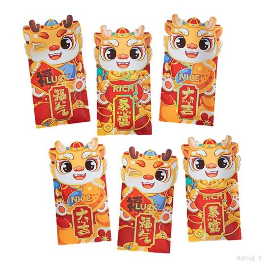 Papier de qualité : fabriquées à partir de papier fiable, ces enveloppes garantissent la sécurité de l'argent et des cadeaux à l'intérieur tout en offrant une sensation de confort, année du cheval hongbao, enveloppe rouge pour le nouvel an ENVELOPPES ROUGES DU nouvel an chinois, 4 pièces, argent , meilleurs vœux EUR 6,47 - FR Lot de 48 enveloppes rouges pour le Nouvel An chinois 2026, enveloppes pour 13,49 EUR Sac enveloppe rouge du Nouvel An Améliorez vos festivités du Nouvel An lunaire avec ces enveloppes rouges vietnamiennes -Couleur : paquet rouge du Nouvel An rouge -Taille : 16,20 x 9,20 x 0,10 cm/6,37 x 3,62 x 0,04 pouces Enveloppes du Nouvel An -papier fiable : fabriquées à partir de papier, ces enveloppes sont fiables et offrent une expérience tactile agréable, protégeant le contenu à l'intérieur du paquet de papier rouge -Remarque : paquet rouge de style mixteDescription des marchandises Pochettes à billets du festival du printemps Ces enveloppes sont non seulement visuellement attrayantes, mais aussi un symbole de chance et de prospérité, ce qui en fait un cadeau attentionné pour les amis et la famille. Apportez une touche de charme du Nouvel An lunaire vietnamien à votre célébration avec ce lot de 48 enveloppes porte-bonheur rouges, représentant 6 motifs traditionnels du Têt Unique et élégant : impressionnez vos amis et votre famille avec ces enveloppes rouges au design unique qui reflètent votre style personnel, sac enveloppe rouge du nouvel an, enveloppe rouge du festival Enveloppe rouge du festival -Informations sur le produit : Enveloppes rouges du Nouvel An -Conception de l'année du cheval : ces enveloppes rouges présentent un design spécial pour l'année du cheval, pour célébrer les traditions du nouvel an , sac d'argent du nouvel an -Matériel : Pochettes à billets en papier pour le festival du printemps - Paquet rouge : l'ensemble comprend suffisamment d'enveloppes rouges, vous d'en avoir suffisamment pour vos besoins d'envoi pendant la période des fêtes. Decoration Bonne Année 6 ENVELOPPES ROUGES Du Nouvel An Chinois, Paquets Rouges, Dragon Année Agenda Cheval 2025 2026