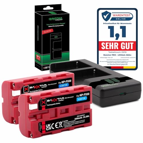 Idéal comme batterie principale ou supplémentaire pour garantir une alimentation continue. Xtar Ladegerät für Sony NP-F550 / NP-F970 Akku kaufen COMPATIBILITÉ PARFAITE & 100% OPÉRATIONNEL - Compatible avec Sony NP-F550, NP-F950, NP-F970 ainsi que de nombreux caméscopes, DSLR, LED et moniteurs vidéo de marques comme Sony, Neewer, Yongnuo, Aputure, Viltrox et bien d’autres Protection avancée contre la surcharge, la surchauffe et les courts-circuits. ✅ SÉCURITÉ MAXIMALE & LONGUE DURÉE DE VIE - L’accu BAXXTAR PRO-ENERGY NP-F750 garantit une alimentation stable et sécurisée grâce à des cellules haute performance. pour Sony type NP-F950/NP-F960/ NP-F970 10400mAh Parfait pour les créateurs exigeants. L'article est compatible avec : Sony CCD-SC65, CCD-TR1, CCD-TR3, CCD-TR8E, CCD-TR57, CCD-TR67, CCD-TR76, CCD-TR87, CCD-TR200, CCD-TR215, CCD-TR300, CCD-TR416, CCD-TR500, CCD-TR516, CCD-TR517, CCD-TR555, CCD-TR716, CCD-TR818, CCD-TR845E, CCD-TR910, CCD-TR917, CCD-TR930, CCD-TR940, CCD-TR3000, CCD-TR3300, DCR-TR8000E, CCD-TRT97 CCD-TRV4, CCD-TRV15, CCD-TRV16, CCD-TRV25, CCD-TRV35, CCD-TRV36, CCD-TRV37, CCD-TRV41, CCD-TRV43, CCD-TRV46, CCD-TRV51, CCD-TRV57, CCD-TRV58, CCD-TRV62, CCD-TRV65, CCD-TRV66, CCD-TRV67, CCD-TRV68, CCD-TRV72, CCD-TRV75, CCD-TRV78E, CCD-TRV81, CCD-TRV82, CCD-TRV85, CCD-TRV87, CCD-TRV88, CCD-TRV90, CCD-TRV91, CCD-TRV93, CCD-TRV95, CCD-TRV98, CCD-TRV99, CCD-TRV101, CCD-TRV119,CCD-TRV215, CCD-TRV315, CCD-TRV517, CCD-TRV615, CCD-TRV715, CCD-TRV716, CCD-TRV720, CCD-TRV815, CCD-TRV3000 DCR-TR7000, DCR-TRV5, DCR-TRV7, DCR-TRV9, DCR-TRV103, DCR-TRV110, DCR-TRV120, DCR-TRV130, DCR-TRV210, DCR-TRV310, DCR-TRV315, DCR-TRV320, DCR-TRV510, DCR-TRV520, DCR-TRV525, DCR-TRV720, DCR-TRV820, DCR-TRV900, DCR-TV900, DCR-TV900E, DCR-VX2000, DCR-VX2100, DCR-VX2100E, DCR-VX9 Serie, DCR-VX9000 DSC-CD100, DSC-CD250, DSC-CD400, DSC-D700, DSC-D770 DSR-200, DSR-250, DSR-300, DSR-PD100A, DSR-PD150, DSR-PD170 GV-A500, GV-A500E, GV-D200, GV-D800 HDR-FX1, HDV FX1, HDV Z1 MVC-FD5, MVC-FD7, MVC-FD51, MVC-FD71, MVC-FD73, MVC-FD75, MVC-FD81, MVC-FD83, MVC-FD85, MVC-FD87, MVC-FD88, MVC-FD90, MVC-FD91, MVC-FD92, MVC-FD95, MVC-FD97, MVC-FD100, MVC-FD200 NEEWER LED 160, 216, 308, 310, 480, W160, BLPad-22, NWPad-22, CN-LuxPad 22, CN-126, CN-160, CN-216, CN-304, CN-576 Bestlight LED 204, W300II, 400, 500C, 600, 650, 660 APUTURE Amaran AL 528, H160, H198, V-Screen V-1, V-2, VS-1, VS-2, VS-3, VS-5, H160, HR672 ViltroxL116B, L116T, L132B, L132T, VL-40B, VL-40T, VL-D60T, VL-162T, VL-200, VL-400T Sound Devices SD 702T, 744T Accu 7000mAh Pour Sony NP-F550 NP-F970 Baxxtar Pro 2X NP-F750 Battery 7000mAh Replacement For Sony NP-F550 NP Accu Pour éclairage LED Neewer Aputure
