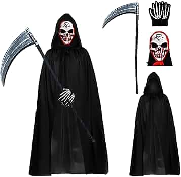 【Conception】: Cette cape reaper est différente des autres costumes Grim Reaper ordinaires. En portant ce costume, vous serez le fantôme le plus effrayant d'Halloween. Le Déguisement faucheuse adulte est un choix incontournable pour Halloween ou une soirée à thème. Si vous souhaitez adopter un look effrayant et marquer les esprits, ce costume est fait pour vous Le matériel de PVC est durable et pas facile à endommager. 【Matériel】: Le costume faucheuse pour enfant est fait d'un Polyester et PVC matériau léger. Costume Halloween Costume Faucheuse 4 Pièces - Masque Squelette, Cape, Gants Et Faux Pour Halloween Costume Effrayant 4 Pièces 【Cape à Capuche Unisexe】 : Notre cape noire avec capuche a une taille unique de 140 cm, convient pour les tailles de 140 cm à 185 cm, aussi bien pour les enfants et les adultes. 【Ensemble de Costume de Faucheuse】: Notre costume de faucheuse contient 1 cape noire d'Halloween, masque de tête de mort, gants de tête de mort et faucille en plastique qui vous offrent des accessoires de maquillage d'Halloween confortables et plus sûrs. Costume Faucheuse Halloween STFYUG Halloween Faucheuse Déguisement, Costume De Faucheuse, Deguisement Faucheuse Adulte, Ensemble De Costumes De Faucheuse D'halloween, Pour La Halloween Mascarade Cosplay Carnaval Cape Noire Capuche Squelette Accessoires