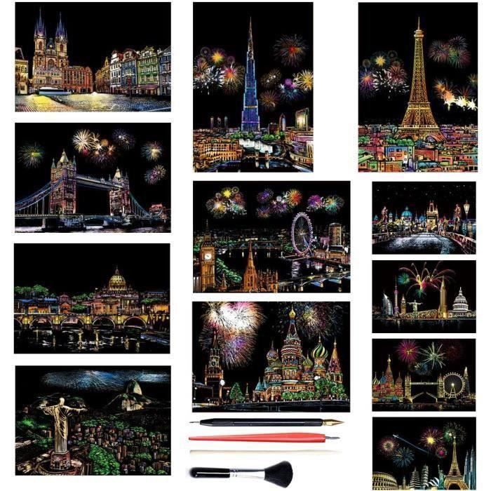 Révélez un magnifique paysage nocturne de la ville avec notre kit de grattage coloré « Scène nocturne métropolitaine ». Cadeau parfait : parfait pour les amateurs d'art, les amateurs de soulagement du stress et tous ceux qui aiment la capitale française ou les images nocturnes de la ville. Instructions créatives : le kit d'art à gratter est idéal pour les projets de bricolage et offre une nouvelle façon passionnante de développer votre créativité. Description: Type : kit de peinture à gratter Matériau : carton. Parfait pour les adultes à la recherche d'une activité relaxante et créative, ce kit de grattage offre un moyen apaisant de se détendre après une longue journée. Une excellente activité artisanale pour les enfants ou les artistes adultes ️Art arc-en-ciel à gratter: Les produits d'art en papier à gratter présentent des couleurs vives et des motifs cachés sous un revêtement mat, ainsi qu'un crayon en bois à révéler avec une simple rayure Qqmora papier à gratter noir Papier à gratter A4 coloré, 10 pièces Dimensions : 40,5 cm x 28,5 cm Poids : 150 g Grande satisfaction du client : avec de nombreuses critiques positives, ce kit d'art à gratter se distingue par sa qualité et son confort d'utilisation. Cela permet aux adultes et aux enfants de créer leurs propres œuvres d'art Découvrez la joie de créer votre propre chef-d'œuvre tout en réduisant le stress et l'anxiété. Kit Image à Gratter Kit D'images à Gratter - Papier à Gratter Coloré Avec Kit D Loisirs Créatifs Adulte Ensemble d'Art de Papier à Gratter Coloré pour Enfants Il suffit d'utiliser le stylo en bois fourni pour gratter doucement le revêtement noir plat et exposer les couleurs irisées en dessous. Embellissement intérieur unique : encadrez votre œuvre d'art finie pour obtenir une pièce unique qui ajoutera une touche de charme français à n'importe quelle pièce. Comprend un seul griffoir pré-imprimé, un outil en bois et une brosse de nettoyage. Activité anti-stress : participez à un projet d'art apaisant et conscient qui est parfait pour se détendre et soulager l'anxiété après une longue journée. Avec ce kit de peinture attrayant, vous pouvez créer une scène vivante et lumineuse avec des bâtiments français emblématiques. Facile à utiliser : le kit de peinture à gratter est facile à utiliser et ne nécessite aucune connaissance préalable en peinture.