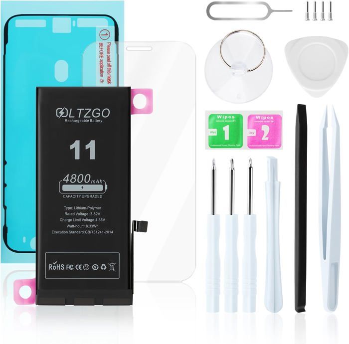 Kit tout-en-un : Batterie + outils inclus, prêt à installer Batterie compatible : cette batterie est uniquement compatible avec les modèles pour 11 : A2223, A2111, A2221 Batterie hautement fiable : Avec 0 cycle initial et une longévité extrême (plus de 1500 recharges). Batterie Iphone 11 6000mah Ll Trader Haute Capacité Batterie IPhone 11 LL TRADER 6000mAh - Haute Capacité - Kit Réparation Complet - Compatible A2111 A2221 Batterie Remplacement 6000mAh Pour Iphone 11 Avec Outils Batterie Haute Capacité neuve pour iPhone 11 Kit complet réparation batterie iPhone 11 Pro | Tout pour Phone Remplacement Batterie iPhone 11 Pro Max