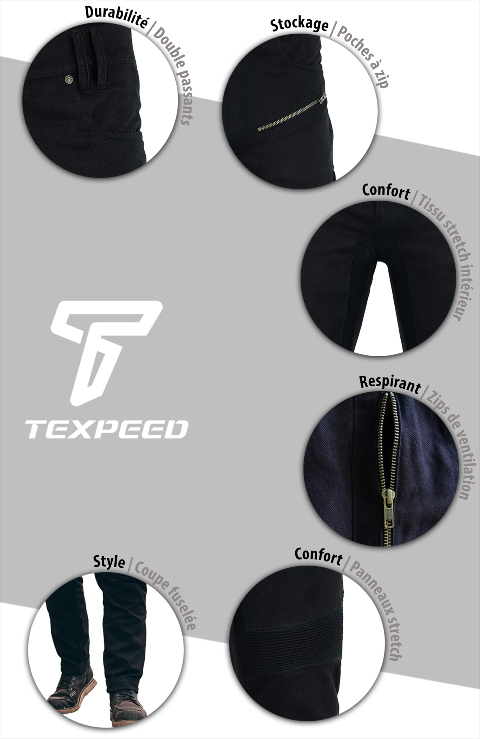 [Premium Denim] : nous comprenons l'importance du style. Pantalon de Moto avec Protection pour Homme Rusty Stitches Le jean TSM-MOTO Aramid Fiber combine un jean de qualité supérieure avec des caractéristiques de sécurité avancées, ce qui en fait le choix parfait pour les motards qui privilégient à la fois la protection et le style. Style polyvalent : passez sans effort de la moto à la vie quotidienne avec nos jeans blindés en fibre d'aramide. [Coutures renforcées] : nous avons renforcé les coutures sur les coutures critiques pour assurer la longévité. Respirant et évacuant l'humidité : le cyclisme peut devenir intense et c'est pourquoi nous avons incorporé une technologie qui évacue l'humidité dans ces jeans. Restez au frais et à l'aise même pendant les longs trajets. Ces jeans sont conçus pour résister aux rigueurs de la moto. Style polyvalent : passez sans effort de la moto à la vie quotidienne avec nos jeans blindés en fibre d'aramide Conçus avec des panneaux en fibre d'aramide dans les zones à fort impact telles que les genoux, les hanches et les fesses, ce jean offre une résistance exceptionnelle à l'abrasion. Jean moto - Équipement moto sur La Bécanerie Jean Respirant Lavable Machine PROTECTION POUR HOMME | LEONE GYM Pantalon Moto Homme Homologué Il est parfait aussi bien pour les promenades décontractées que pour une soirée en ville. En outre, ces jeans sont respirants, évacuent l'humidité et sont lavables en machine, ce qui les rend parfaits pour une utilisation tout au long de la journée. Les coutures renforcées et les multiples poches, y compris une poche dédiée au téléphone, offrent durabilité et confort. Restez en sécurité, élégant et confortable avec ce jean de moto polyvalent et protecteur. La sécurité est primordiale, avec des protections certifiées CE au niveau des genoux et des hanches, qui offrent une protection contre les chocs tout en garantissant flexibilité et confort pendant le voyage.