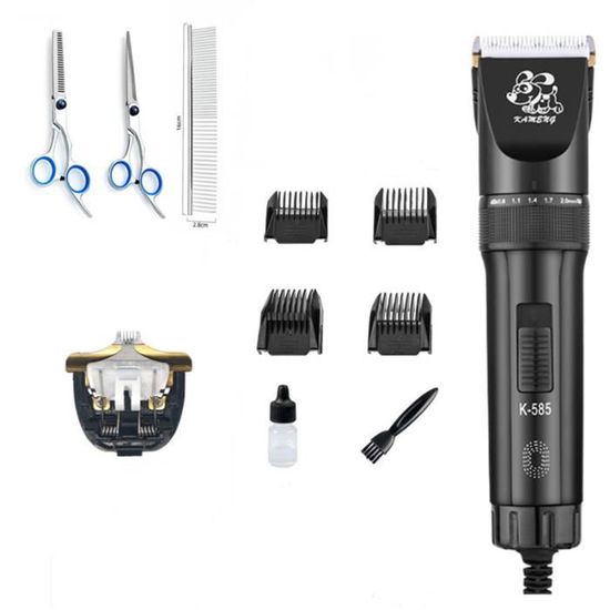 Ne laissez pas l'appareil hors de portée des enfants ou des animaux. Évitez tout contact avec les yeux et les zones sensibles du corps. Veuillez suivre les instructions du manuel (français non garanti) pour un nettoyage et un entretien appropriés. Peigne à effiler chien - Kerbl - Niche à Chien Nombreux accessoires avec 4 sabots de 3,6,9,12 mm Tondeuse chien : nos conseils pour son achat Tondeuse Kerbl Sonic Batterie Kerbl Profi Tondeuse Haute Puissance à Batterie Pour Chien Kit Tonte Chien 4 Sabots Vous souhaitez faire une beauté à votre chien ? Optez pour la Tondeuse à batterie Sonic de KERBL. Idéale pour la tonte de finition, elle offre une haute efficacité de rasage grâce à sa tête en céramique. Très pratique, elle est sans fil et dispose de 2 batteries puissantes