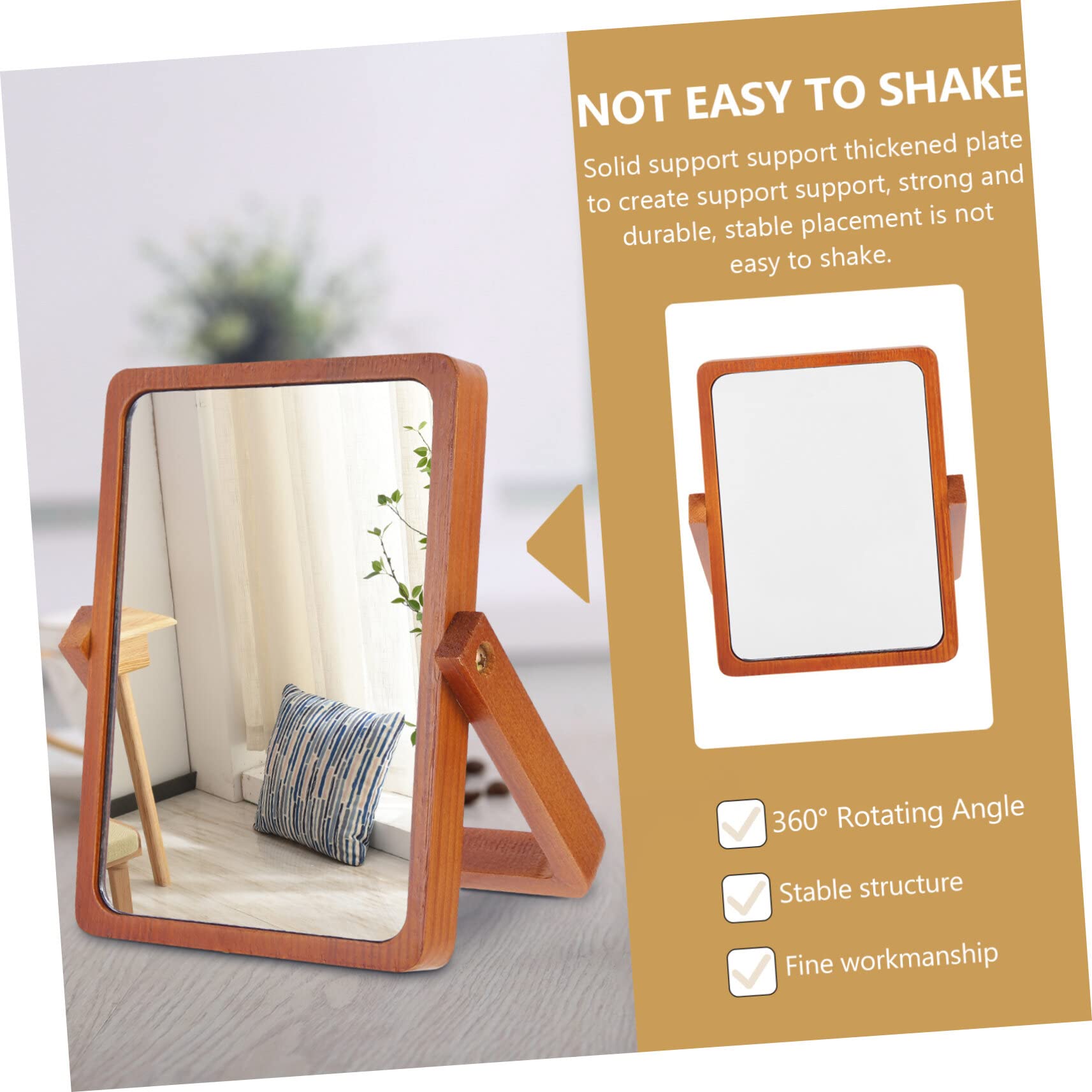 Lors de l'application du maquillage, vous pouvez capturer la profondeur et l'équilibre des couleurs avec plus de précision, rendant votre maquillage plus naturel et parfait. NAROSEBE Miroir de maquillage en bois debout - Pliable - Miroir de NAROSEBE Miroir de Table Pliable ---- a non seulement un design mignon, mais dispose également d'une surface de miroir haute définition pour garantir que chaque détail est clairement visible Conception pliable, gain de place : Ce miroir de table coiffeuse présente un design pliable qui peut être facilement plié et placé dans un tiroir ou une armoire lorsqu'il n'est pas utilisé sans prendre trop de place. [Angle réglable à 90°] : Le miroir de maquillage bois a une conception à angle réglable et l'angle d'inclinaison du miroir peut être ajusté en fonction des besoins et des habitudes personnels. Dans le même temps, la taille est modérée après dépliage (hauteur 19 cm, diamètre 16 cm), vous pouvez donc profiter confortablement du maquillage à tout moment et n'importe où. Qu'il s'agisse de petits pores ou de contours du visage, les miroirs cosmétiques à poser peuvent être restaurés clairement et véritablement. [Excellent assistant de maquillage] : Le miroir de table coiffeuse est fait de verre de haute qualité ou de matériaux spéciaux, qui peuvent offrir une excellente clarté. Sûr et incassable : Le petit miroir sur pied bois possède une grande base qui offre un support stable et ne se renverse pas facilement. Miroir De Poche Miroir De Bureau En Bois Petit Miroir Sur Pied 25 X 22CM Miroir De Table Rotatif à 360 Degrés Miroir A Poser Haut Miroir - Maison Miroir Design Chat Excellent assistant de maquillage Le miroir de table coiffeuse est fait de verre de haute qualité ou de matériaux spéciaux, qui peuvent offrir une excellente clarté. Notre miroir de table à cadre en bois est de haute qualité, tient fermement sur la table et est facile à plier et à ranger dans un sac. Il est suffisamment grand pour le maquillage quotidien et les retouches. Taille : 22x16cm Spécifications Matériau : bois + verre, Dimensions : comme indiqué La large base en bois est non seulement belle, mais fournit également un support stable pour empêcher le miroir de vaciller ou de basculer pendant l'utilisation. Son utilisation est sûre et sécurisée. Il est particulièrement adapté à l'eye-liner et aux sourcils et convient à tous ceux qui aiment la beauté et les soins personnels. [Base en bois stable] : La base du petit miroir sur pied est en bois et le châssis est un bloc rond d'un diamètre de 12,5 cm et d'une épaisseur de 8 mm. [Miroir haute définition] : Fabriqué en matériau miroir haute définition, l'effet de réflexion est excellent et peut véritablement restaurer l'état de la peau. C'est une aide puissante pour votre maquillage quotidien. L'arrière du miroir est fermement fixé à la planche de bois et n'est pas facile à tomber ou à s'écailler.