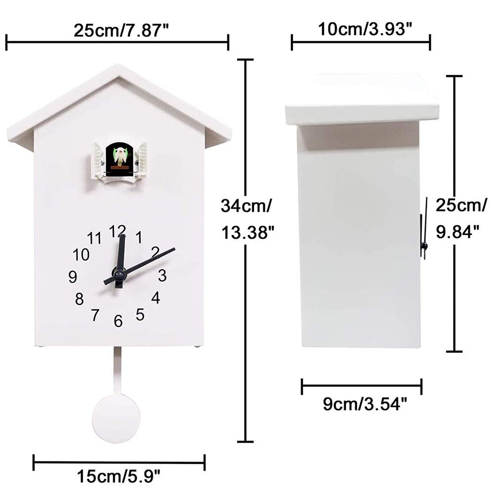 Horloge chalet 8 jours à coucou - Randonneur et son chien Le temps des petits oiseaux: lorsque tout est terminé, le coucou pousse automatiquement la porte. Horloge Coucou Murale Cuco Clock Coucou Ferme Avec Horloge Murale à Balancier, Coucou Moderne Horloge Murale Chalet Caractéristiques: Couleur: blanc / vert Matériel: ABS Taille: 25 x 15 x 9 cm. Sons: Tous les sons sont des enregistrements naturels authentiques d'animaux réels et le volume est entièrement réglable. Un capteur de lumière intégré assure une nuit tranquille. Horloge coucou moderne dans un style ancien - Horloge univers 4: Horloge Murale Coucou Design L'erreur de mesure autorisée est de +/- 1 à 3 cm. L'oiseau balance ses ailes, ouvre une petite bouche et envoie un tweet coucou valle. Contenu de la boîte: 1 x horloge à coucou Noter: Une prise de vue légère et des affichages différents peuvent rendre la couleur de l'élément de l'image légèrement différente de la réalité.