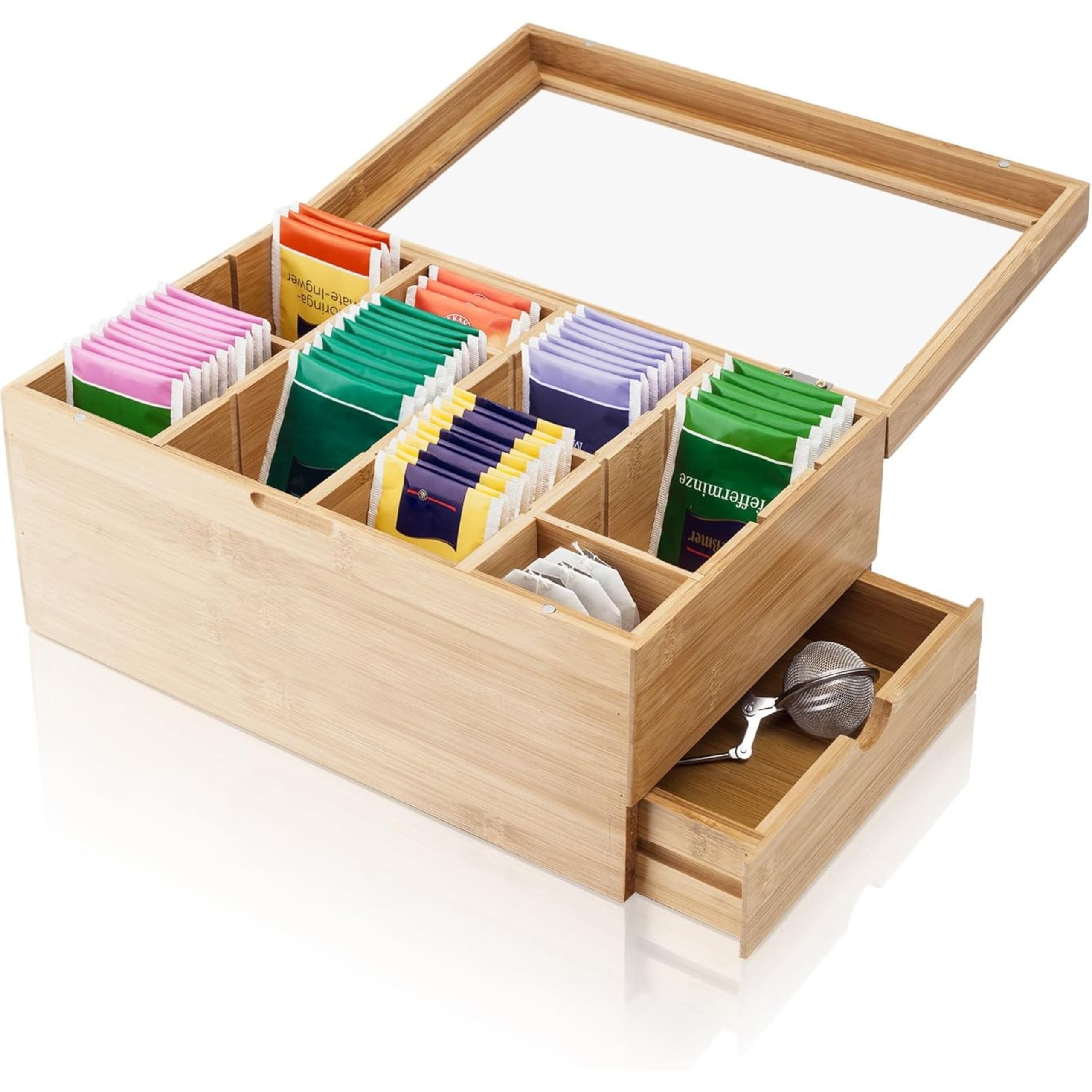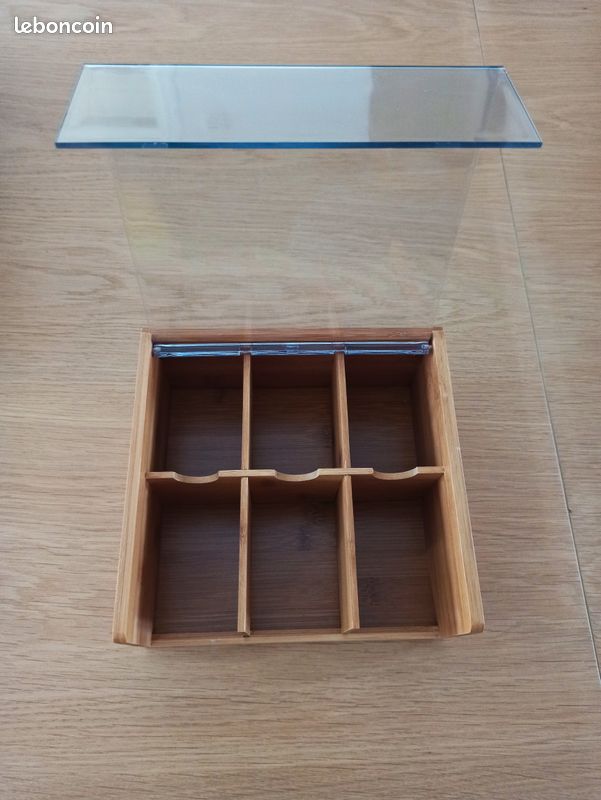 L'encoche sur la boîte à thé permet un accès facile. Facile à remplir : La conception ouverte de ce porte-sachet de thé rend l'organisation et le remplissage de votre porte-sachet de thé rapide et sans tracas, en gardant votre thé et d'autres éléments essentiels toujours stockés et à la recherche d'une belle apparence. EN STOCK : Relaxdays Organiseur à thé, 12 compartiments, en bambou, aussi pour capsules de café, HLP : 36 x 31 x 19 cm, nature, 10050666_0_FR pas cher. Livraison rapide partout en France Cette boîte de rangement pour sachets de thé est également parfaite pour stocker des ingrédients de pâtisserie ou des dosettes de café.Boîte à thé en détail - Dimensions totales H x L x P : env. 11 x 32 x 28 cm- Dimensions intérieures de chaque compartiment H x L x P : env. 8 x 7 x 8,5 cm- Poids : env. 1,6 kg- Matériau : bambou... Cet organisateur de thé offre une présentation verticale qui empêche les sachets de thé de s'éparpiller dans un désordre disgracieux, ce qui permet de maximiser l'espace sur votre plan de travail ou dans votre armoire de cuisine. Boîte à the compartiments au meilleur prix | Leroy Merlin Le bambou est très facile à nettoyer et résiste à l'épreuve du temps. Dimensions du produit : notre organisateur de thé mesure 31 x 20 x 28 cm et peut être placé dans l'armoire de la cuisine, sur le plan de travail ou sur la table à manger., Il doit être monté. Compartiments Ajustables 12 Cases Boîte à Thé 12 Compartiments En Bambou Pour Sachets, Fenêtre Capacité 180 Sachets Thé Vous pouvez ranger des sachets de thé, des tasses et du café instantané. Compact et élégant : Son design élégant se fond sans effort dans le décor d'une cuisine, d'une salle de pause ou d'un café, pour un rangement parfait des sachets de thé dans votre station de thé et de café. Conception verticale à 3 niveaux : Maximisez votre espace avec cet organisateur de station de thé grâce à une construction verticale intelligente, qui permet de garder tout facilement accessible tout en minimisant l'encombrement.