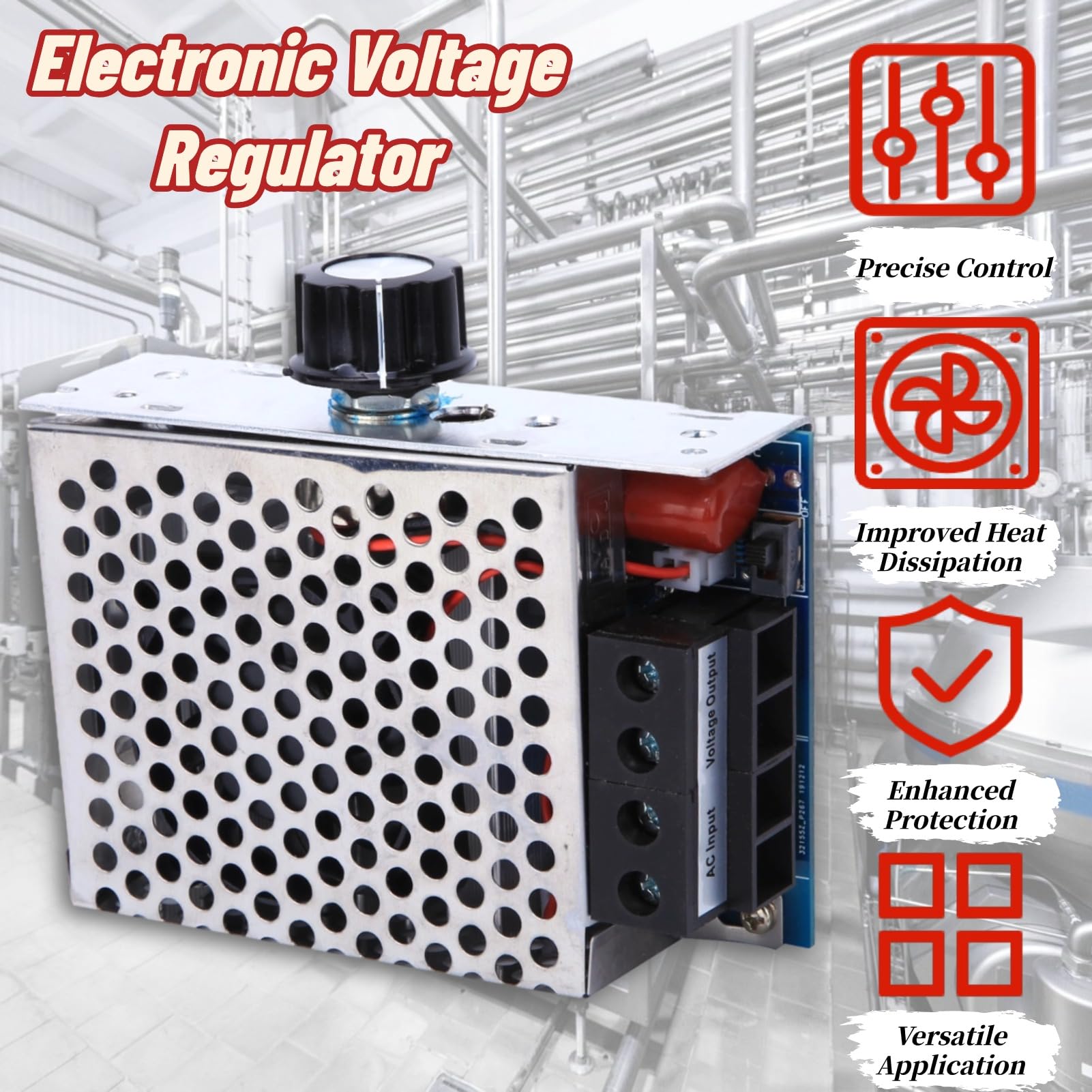 Faites pivoter le bouton du potentiomètre pour jouer au rôle de gradation, de vitesse, de tension et de température claire et sombre et sombre; très facile à utiliser. La conception du circuit de ce produit est extrêmement avancée, déclenchant un contrôle précis et de bons matériaux. Il peut être utilisé pour les gros appareils d'une puissance électrique inférieure à 10 000 watts (charge résistive pure). En raison de la grande puissance, des appareils électroménagers ordinaires ou de petites usines suffisent Il convient aux appareils de grande taille d'une puissance inférieure à 5 000 W. Tension : 220 V CA. Puissance maximale : 10 000 W (limite de puissance instantanée pour charge résistive Tels que: fours électriques, chauffe-eau, lampes et lanternes, grands moteurs et Régulateur de vitesse SCR ca 220V 4000W haute puis... - Grandado [Application large] Idéal pour les fours électriques, les chauffe-eau, les lampes et les grands moteurs. [Régulation de tension précise] Réglementer la tension entre 0 V et la tension d'entrée pour répondre aux exigences spécifiques. Régulateur Thyristor Puissance Régulateur De Tension CA Super Haute Puissance 10 000 W Appareil Chauffant Spécification: Type d'article: régulateur de tension AC Utilisez la tension: AC - Puissance maximale: 10000W (charge résistive) Régulation de tension: AC 0V - réglable entre les tensions d'entrée de proximité Instructions: Connectez le régulateur de tension du thyristor devant le circuit électrique du consommateur et connectez respectivement les fils d'entrée et de sortie (sans le fil zéro-firme). 1., Le circuit de déclenchement est unique et la tension de commande est régulée avec précision sans hystérésis. Une fois que la charge résistive est désactivée à 0, elle est ajustée à partir de 10 V après mise en marche et ajustée à la tension de puissance maximale près de l'entrée., 2., Le thyristor ajoute un circuit de protection d'absorption RC., 3., Ventilateur mis à niveau avec commutateur Contrôle intelligent, bon effet de dissipation de chaleur et durée de vie longue., 4., La coque en aluminium exquise standard de haute qualité est plus sûre et pratique., 5., Améliorez la marque Full Copper 75A Postes de liaison à courant ultra-élevé., 6., Régulateur de tension électronique super-haute puissance, adapté à la commande des lumières colorées d'ingénierie d'éclairage, du fil de chauffage, du contrôle de chauffage de la chaudière, du moteur à outils électriques, etc.