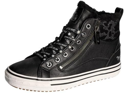 Baskets Casual Logo Doré Tennis Mustang Kakis Et à Lacets Plats Et Zip Baskets MUSTANG Noires Talon Plat Baskets tennis noires à talon plat et à lacets plats avec logo marron L’identité Mustang qui, à l’image de son nom et du logo qu’elle arbore prône la fougue et l’indépendance, est profondémment encrée dans chaque produit de la collection Revêtement noir texturé Empeigne, contrefort et garant doux Effet crocodile sur l'arrière de la cheville avec rond métallique Imprimé logo sur le contrefort 2 bandes marron sur les côtés, Textile Baskets pour Femmes Mustang Jeans| Soldes dès 38,24