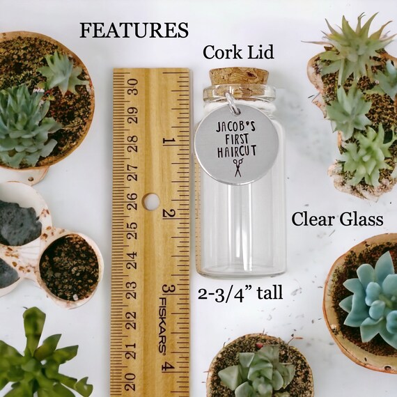 WEBEEDY 4 Ensemble de Porte Mémoire pour la Première Coupe de Coffret Cheveux Bouclés A-30 Pièces 1 Ml - Mini Bouteilles En Verre Avec Bouchon En Liège Transparent, Petit Flacon De Flacon Liège Bébé UTILISATION POLYVALENTE : Idéale pour conserver les cheveux coupés et les boucles de bébé dans un contenant décoratif et accrocheur. Conservez précieusement les premiers souvenirs capillaires de votre bébé avec cette élégante bouteille en verre. Un objet décoratif élégant qui trouvera naturellement sa place dans la chambre de bébé ou dans votre vitrine aux souvenirs. Dotée d'un bouchon en liège soigneusement sélectionné, cette bouteille souvenir est spécialement conçue pour préserver les premières mèches de cheveux de votre petit trésor ou même les précieux cheveux du fœtus SOUVENIR IDÉAL : Magnifique bouteille en verre avec bouchon en liège, conçue spécialement pour conserver les précieuses premières coupes de cheveux ou boucles de bébé. Pot en verre avec bouchon 7 cm DESIGN ÉLÉGANT : Verre transparent pour une visibilité optimale, tandis que le bouchon en liège assure une fermeture sûre et traditionnelle. C'est une façon unique et délicate de créer un héritage familial tangible, permettant de revivre ces moments précieux années après années.