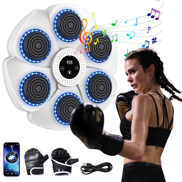 Spécification : Nom : machine de boxe à musique Coloris : bleu. Une machine de boxe musicale et électronique est constituée d’un socle mural et d’une série de cibles équipées de capteurs. Ces cibles sont placées à différents endroits pour s’adapter aux différentes hauteurs et styles de frappe Matériau du boîtier : ABS + PC Matériau cible de la boxe : caoutchouc souple TPR Dimensions : 405 x 405 x 55 mm Fonction : connexion Bluetooth ; lecture de musique Convient pour : débutants/enfants/adultes 1., Pratique et facile à installer : la configuration de cette machine de boxe est un jeu d'enfant. Appareil d'entraînement de boxe Bluetooth intelligent : faites l'expérience d'un entraînement de boxe musical de haute technologie comme jamais auparavant avec notre machine innovante de boxe musicale. Les gants offrent un excellent maintien et protection, de sorte que vous pouvez vous immerger pleinement dans l'entraînement de boxe passionnant. Machine De Boxe Musicale , Appareil De Boxe Électronique Portable Mural Avec 2 Gants, 9 Vitesses Et 9 Modes D'entraînement, 6 Éclairages De Couleur, Comptage Automatique, Connexion Bluetooth (Bleu Roi Machine Boxe Il est livré avec des instructions claires et toutes les pièces nécessaires pour une installation rapide et sans tracas. Fixez-le en toute sécurité et commencez votre entraînement de boxe rythmique sans problème. Machine de boxe musicale avec gants : profitez de l'expérience de boxe ultime avec notre machine de boxe musicale équipée d'une paire de gants de haute qualité. La construction robuste garantit qu'il peut traiter vos coups et coups de pied avec facilité, offrant une expérience d'entraînement sûre et fiable. Doramier Machine de Boxe Musicale, Smart Bluetooth Music Boxeur Comptage intelligent : connectez votre appareil via la technologie Bluetooth et jouez vos chansons préférées en toute simplicité. Comptage intelligent : connectez votre appareil via la technologie Bluetooth et jouez vos chansons préférées en toute simplicité. Fonction de comptage intelligente sur l'écran pour capturer chaque coup en détail afin de créer un environnement sportif plus dynamique et passionné pour vous
