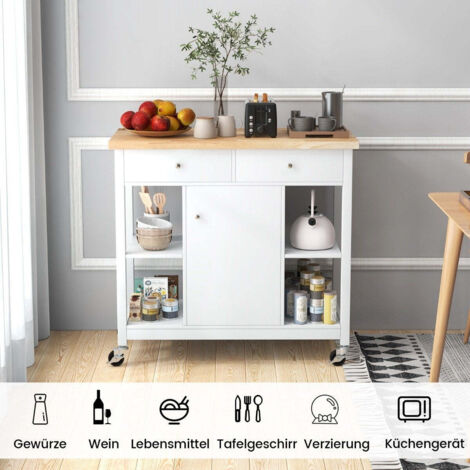 POLYVALENCE D'UTILISATION : Que ce soit en cuisine, salle à manger ou même sur la terrasse, ce meuble roulant s'adapte à tous vos besoins : îlot de préparation, desserte de service ou espace de rangement supplémentaire. Buffet De Cuisine Moderne Extensible Avec Roulettes Et Plan De Travail Chariot De Service Avec Etagere A Epices Et 8 Tiroirs Blanc Bonnlo Meuble Cuisine à roulettes, Desserte de Cuisine avec Plan de Travail, Chariot de Service avec Tiroirs, Îlot Central pour Cuisine, Salle à Manger et Extérieur, Blanc, 95 x 46.2 x 89 cm MATÉRIAUX ROBUSTES ET ENTRETIEN FACILE : Fabriqué en panneaux de particules résistants avec un plan de travail en bois d'hévéa massif, ce meuble cuisine allie durabilité et élégance. RANGEMENT INTELLIGENT ET FONCTIONNEL : Ce chariot repas blanc avec deux portes, deux tiroirs et porte-serviettes offre une organisation optimale pour vos ustensiles et accessoires de cuisine. VEVOR Îlot Central 90x39 cm Desserte de Cuisine à Roulettes 1 Armoire 1... La surface vernie imperméable s'entretient d'un simple coup d'éponge pour une hygiène parfaite. Moderne Desserte de Cuisine à Roulettes Matériaux de qualité, en bois d'hévéa, bois MDF, Roulettes en métal Dimensions: 95 x 46., 2 x 89 cm Capacité de charge: 60KG Poids d'envoi: 29KG Meuble Cuisine à Roulettes Chariot De Cuisine Avec Plan De Travail, Chariot De Service à Roulettes Desserte Ilot à Roulettes