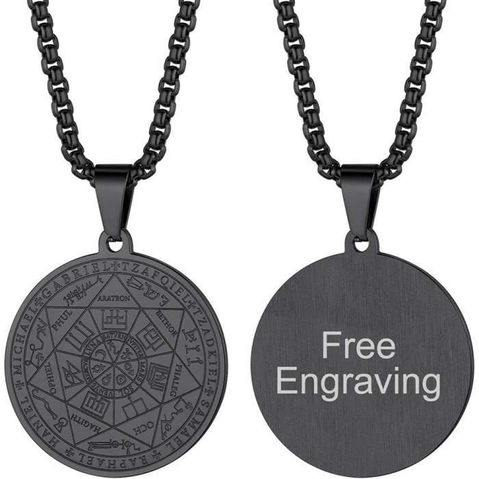 Coffret cadeau non inclus Chaîne et pendentif en acier inoxydable pur, sans nickel, hypoallergénique Pendentif : 30 mm de diamètre, peut être porté en toute sécurité dans l'eau/shampooing/détergent Collier Homme Femme Symbolique Médaille Talisman 7 Archanges Personnalisable-Pendentif Sceau Des 7 Archanges Or-Noir-Acier Bijou Vintage Sceau Sept Archanges Collier sceau des 7 archanges - Collier sceau des 7 archanges Collier ras du cou en forme de serpent, bracelet rétro réglable en forme de serpent, collier incurvé avec strass, accessoires d'Halloween, bijoux tendance pour femme Sceau des 7 Archanges - Boutique El'aimant Air