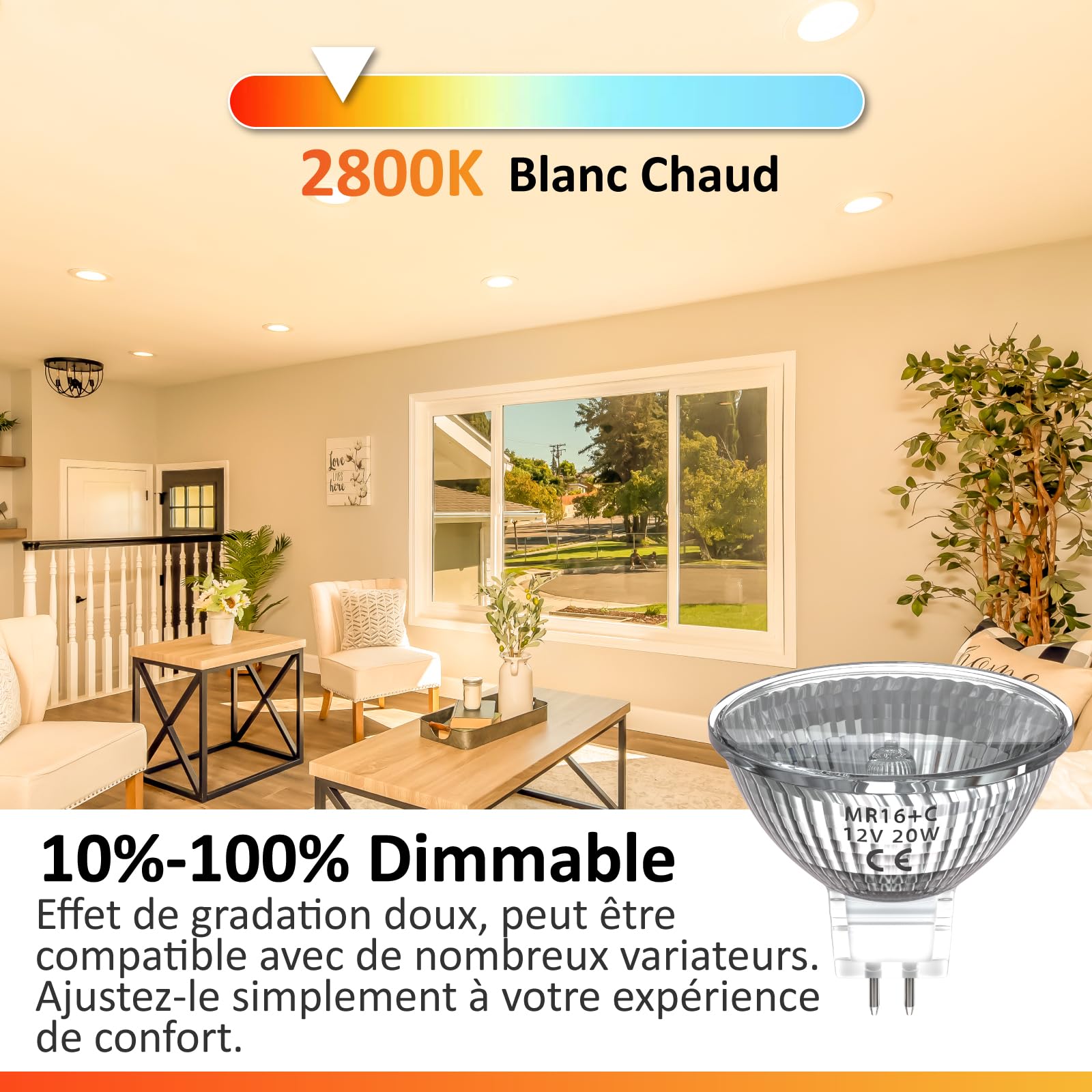 Ampoule - 50W Gu5.3 Mr16 Halogène Dimmable Dc 12V Basse Tension Broches Ampoule Halogène MR16 50W Pack De 8 Ampoule Halogene 50w 12v MR16, Spot Halogene GU5.3 Dimmable Blanc Chaud 2800K, 2 Broches Ampoules Halogène Couvercle En Verre Pour Plafonnier, Pour Plafonnier, Eclairage Sur Rail Encastré Ampoules Halogènes MR16 50W 12V 【Conseils Chaleureux】: Ce Produit Est Plug and Play, Facile à Installer et Adapté à N'importe Quel Support de Lampe MR16., Si Vous Avez des Questions, N'hésitez Pas à Nous Contacter. 【Lampe Halogène MR16】: Halogène 12V 50W, Taille: 50 x 45MM, Base GU5., 3 à Double Broche (5., 3MM Entre 2 Broches), 500LM. 【Longue Durée de Vie】: La Durée de Vie du Plafonnier Halogène MR16 est Supérieure à 90 % des Ampoules du Marché. Pack de 8 Ampoule Halogene 50w 12v MR16, Spot Halogene GU5.3 Dimmable Blanc Chaud 2800K, 2 Broches Ampoules Halogène Couvercle en Verre Pour Plafonnier, Pour Plafonnier, Eclairage Sur Rail Encastré [Classe énergétique G La Durée de Fonctionnement Moyenne Peut Aller Jusqu'à 2000 Heures. Large Application]: L'halogène MR16 50W Est Adapté Pour Les Eclairages Encastrés, L'éclairage Sur Rail, L'éclairage D'accentuation, L'éclairage Paysager, Les Eclairages Paysagers. Largement Utilisé Dans les Bureaux, Expositions, Maisons, Hôtels, Musées, Restaurants, Magasins, etc Largement Utilisé Dans les Bureaux, Expositions, Maisons, Hôtels, Musées, Restaurants, Magasins, etc. Pas de Scintillement, pas de Rayonnement UV, Meilleure Protection de Vos Yeux.