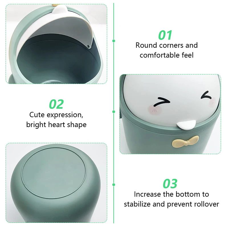 Cyrank Mini Poubelle de Bureau Mignonne, Corbeille à Papier en Forme d' animal de Chat de Dessin animé avec Couvercle pivotant Mini Poubelle de comptoir Petite Poubelle(Blanc Mini Poubelle De Bureau Avec Couvercle, Poubelle Portable De Dessin Animé Mignon, Organisateur De Chambre à Coucher, Bureau Voiture, Petite Poubelle De Rangement De Papeterie Corbeille Mignon Animaux Cartoon Compatibilité polyvalente: adorable en forme d'animal, avec un couvercle anti-fuite; Parfait pour les bureaux, les vanités et les entrées, garder les déchets invisibles et surfaces sans tache, tout en faisant le doublant comme un charmant accent de décoration pour les chambres Présentation de notre boîte de déchets de bureau compacte! Comprend des bords lisses pour une manipulation sûre et s'adapte dans les porte- ou sur les compteurs. Petits prix et livraison gratuite dès 25 euros d'achat sur les produits Zerodeko. Commandez Zerodeko Cuisine Animal de Bureau Poubelle Mignon Poubelle avec Couvercle Petit Panier à Déchets Dessin Animé Centre Commercial Poubelle pour Chambre d'enfants Bureau Comptoir Poubelle Placement pratique: Conçu pour s'adapter aux porte- et aux comptoirs, cette poubelle compacte peut maximise la capacité de stockage, minimisant le besoin de vidange fréquente, des espaces bien rangés ABOOFAN Mini poubelle de bureau compacte en forme d'animal avec couvercle pour bureau, salle de bain, cuisine : : MaisonÀ propos de cet article Poubelle : design spécial, pratique pour secouer le couvercle, ce qui vous fera gagner du temps d'utilisation. Garder votre bureau propre et bien rangé peut réduire efficacement la propagation de Jolie poubelle de bureau Ajout chic: esthétique élégante avec des couleurs en sourdine et des contours arrondis, cette poubelle de bureau est pratique mais décorative, se mélangeant parfaitement à la décoration intérieure moderne Gardez les ordures discrètes, les surfaces bien rangées et l'air frais avec son design élégant.