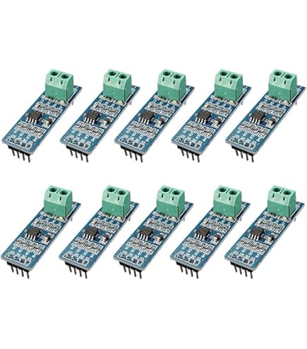 Module convertisseur MAX485 RS 485 de TTL à RS485 5V Lot 5 Modules MAX485 Arduino Kit ANGEEK 5 Stück MAX485 Module 5V TTL To RS485 Converter Module Kompatibe Arduino Nano Module Basse Consommation Bornier 5.08mm 【Idéal pour l'apprentissage et le développement】 : le module MAX485 est largement utilisé dans les expériences Arduino, l'enseignement de la communication 485 et l'innovation électronique DIY. Description : Le module RUIZHI MAX485 est une carte convertisseur TTL vers RS conçue pour une communication série fiable. 【Puce MAX485 haute performance】 : équipée de la puce émettrice-réceptrice basse consommation MAX485, conçue pour une communication RS fiable avec une vitesse de balayage contrôlée. Longue distance : ce module émetteur-récepteur à faible consommation est basé sur le circuit intégré MAX485 pour permettre la communication série sur de très longs câbles (jusqu'à 4000 pieds / 1200 mètres 【Accès complet aux broches】 : toutes les broches de la puce du module MAX485 sont déconnectées, ce qui permet un contrôle flexible via un microcontrôleur pour les projets de bricolage et les applications d'apprentissage. Ces petits convertisseurs TTL vers RS485 fonctionnent en 5V et permettent une communication série stable jusqu'à 2,5 Mbps sur une distance de 1200 mètres - idéal pour les systèmes industriels ou la domotique 【Fonctionnement stable à 5 V】 : prend en charge une tension de fonctionnement de 5 V avec une interface simple vers les niveaux de signal TTL, le module MAX485 est idéal pour le développement de microcontrôleurs. Spécifications : Nom du produit : Module TTL vers 485 Puce centrale : MAX485 faible puissance, émetteur-récepteur à vitesse de balayage limitée Tension de fonctionnement : 5 V Type d'interface : TTL vers 485 Connecteur terminal : bornier à 2 broches de 5,08 mm intégré Définition des broches : VCC – Alimentation (+5 V) GND – Masse RO – Sortie récepteur, à connecter au microcontrôleur RXD DI – Entrée pilote, à connecter au microcontrôleur TXD RE – Activation de la sortie récepteur, contrôle IO (RE=0 activé, RE=1 désactivé) DE – Activation de la sortie du pilote, contrôle E/S (DE=0 désactivé, DE=1 activé) Modes de contrôle : Deux contrôles E/S : RE et DE contrôlés séparément Contrôle E/S unique : RE et DE connectés ensemble à une E/S Applications : Développement de microcontrôleurs, projets Arduino, expériences éducatives, apprentissage de la communication RS, électronique DIY Les produits comprennent : 5 * 5V MAX485 TTL vers 485 RS Module