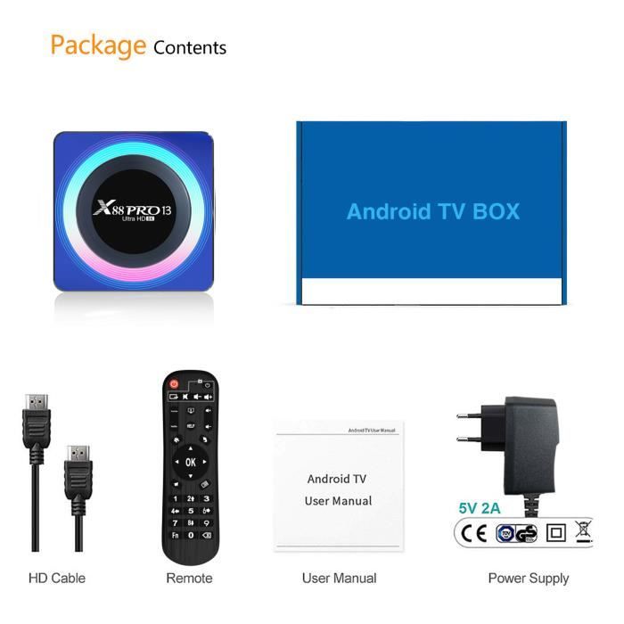Transformez votre téléviseur en Smart TV grâce aux Box Android X96 MINI Vendeur Francais avec Support 7/7J Services de streaming pris en charge: Netflix, YouTube, Prime Video, Chromecast, Disney+ et bien d'autres encore Lecteur iptv android – Trouvez le meilleur prix Système d'exploitation : Android 11., 0 avec des applications pour le streaming, la musique, les jeux, etc Le boîtier IPTV X88 PRO 13 de PRUMYA offre une expérience multimédia complète avec Android 13.0, supportant des applications comme Netflix et KODI. Il dispose de 4 Go de RAM et 64 Go de stockage, d'une connectivité Wi-Fi bi-bande et d'une sortie HDMI 4K à 60 Hz pour des images nettes Box TV RK3528 4Go RAM 32Go ROM X96 Mini Smart TV Box 2+16 Go Boitier Iptv Lecteur Multimédia Android 10.0 Quad Core WIFI 4K H Android Tv 4go Ram Le nouveau X88 PRO 13 est une Android TV qui décodera des images en qualité 4K à 60 images par seconde grâce à son processeur Quad-Core Rockchip RK3528 et qui dispose d'une capacité de stockage de 32 Go