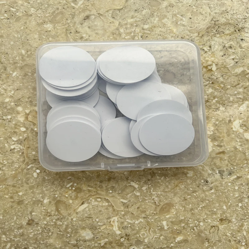 Remarques : Certains téléphones ne sont pas en mesure de lire les étiquettes de carte NFC, veuillez le comprendre clairement avant l'achat. Lot de 30 cartes NFC 215, pour cartes rondes NFC N... – Grandado Veuillez noter qu'un appareil compatible NFC est nécessaire. Pièce NFC : le colis comprend 10 cartes blanches NTAG215, compatibles avec les systèmes Nintendo Switch, Wii U et 3DS Large application : les cartes NFC en PVC peuvent être utilisées pour la publicité intelligente en plein air, la certification des produits, l'étiquette de support de téléphone mobile, le jumelage WiFi, l'étagère d'étiquettes électronique et la carte de visite, etc. Facile à utiliser : le processus est simple, vous avez juste besoin de flotter vos téléphones sur l'étiquette NTAG 215, les données seront imputées sur vos téléphones, il n'y a pas besoin d'énergie, de batterie ou de couplage manuel, pratique à utiliser Taille de la carte : 25 mm de diamètre. 20 Unidades De Cartões NFC Em Branco NTAG215 Etiquetas NTAG 215 Para TagMo Amiibo | Brasil Fonction : lecture et écriture Temps de stockage de données : plus de 10 ans., Contenu : 10 cartes NFC. Occasions : Vous pouvez utiliser la carte vierge NTAG215 pour définir un réveil, allumer et éteindre le WiFi, passer un appel, lancer une application, joindre un réseau, afficher un message, partager un contact, afficher une adresse ou une localisation, mettre à jour les réseaux sociaux, ouvrir une page Web, etc. Distance de lecture : de 1 à 5 cm (en fonction du lecteur et de l'environnement). Large application : les cartes NFC en PVC peuvent être utilisées pour la publicité intelligente en plein air, la certification des produits, l'étiquette de support de téléphone mobile, le jumelage WiFi, l'étagère d'étiquettes électronique et la carte de visite, etc NFC Pour Switch, Téléphone Et Automatisation Lot De 100 Cartes NFC Vierges NTAG215 NFC Rechargeables Avec Puce NFC 25 Mm, 215 Cartes Rondes Compatibles Avec TagMo Et Amiibo Et Téléphones Mobiles étiquettes NFC Rondes NTAG215 Programmables Surface du carton : finition brillante.