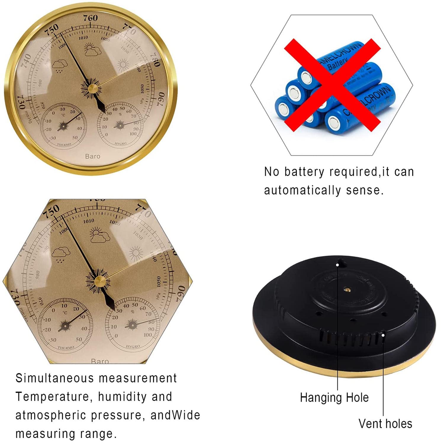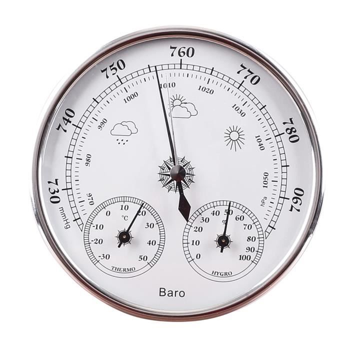 ▶[Température, humidité, pression atmosphérique] : notre baromètre domestique multifonction est utilisé pour mesurer des paramètres tels que la température ambiante, l'humidité et la pression atmosphérique, et prédire avec précision les changements météorologiques futurs en fonction des changements de température ambiante, d'humidité et de pression atmosphérique. JINYISI Baromètre, baromètre pour la maison, baromètre météo, baromètre mural, baromètre de 145 mm, station météo intérieure et extérieure Dimensions : 7,2 x 7,2 x 3,6 cm., Couleur : argent + blanc. Vous pouvez juger si la pression d'air demain est élevée ou faible, le pointeur argenté est manuel, il ne changera pas. ▶[Utilisation correcte de l'aiguille de contraste] : de nombreux clients ne comprennent pas, pensent malheureusement que le pointeur argent est le degré de pression atmosphérique, en fait, le pointeur argent est juste un pointeur de contraste, parce que le changement de pression est très petit, par exemple, le pointeur argenté est ajusté manuellement à la même position que le noir. Que ce soit dans le salon, le bureau, le jardin ou la chambre, c'est une décoration classique et pratique. Toute personne intéressée par le suivi météo va adorer cet appareil élégant. Horloge Murale sans Fil pour Station météo, Horloge météo avec capteur... Plage du baromètre : 950 ~ 1070 HPA (710 ~ 800 mmHg)., Poids net : 48 g., Poids brut : 68 g. Baromètre Viking 130 Barigo | Baromètre marin Baromètre Mural 3 En 1 Baromètre, Baromètre 3 En 1, Moniteur Météo, Baromètre Mural Domestique Thermomètre Hygromètre Baromètre Belle décoration : le thermomètre multifonction portable ajoute de l'élégance à n'importe quelle pièce de votre maison. Le thermomètre multifonctionnel ajoute de l'élégance à n'importe quelle pièce de votre maison. Le baromètre d'extérieur est une décoration classique et pratique, que ce soit dans le salon ou le bureau. Mesure manuelle de la taille, marge d'erreur de ± 3 cm. Matériaux de qualité supérieure : baromètre fabriqué en métal et acrylique de haute qualité, solide et durable, bonne performance, longue durée de vie, et facile à nettoyer, pratique et bon instrument de prévision météo.