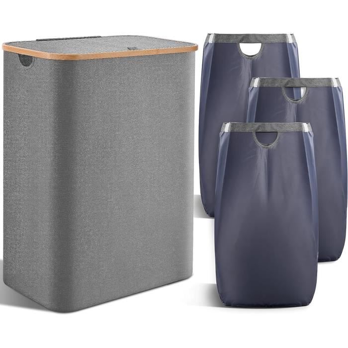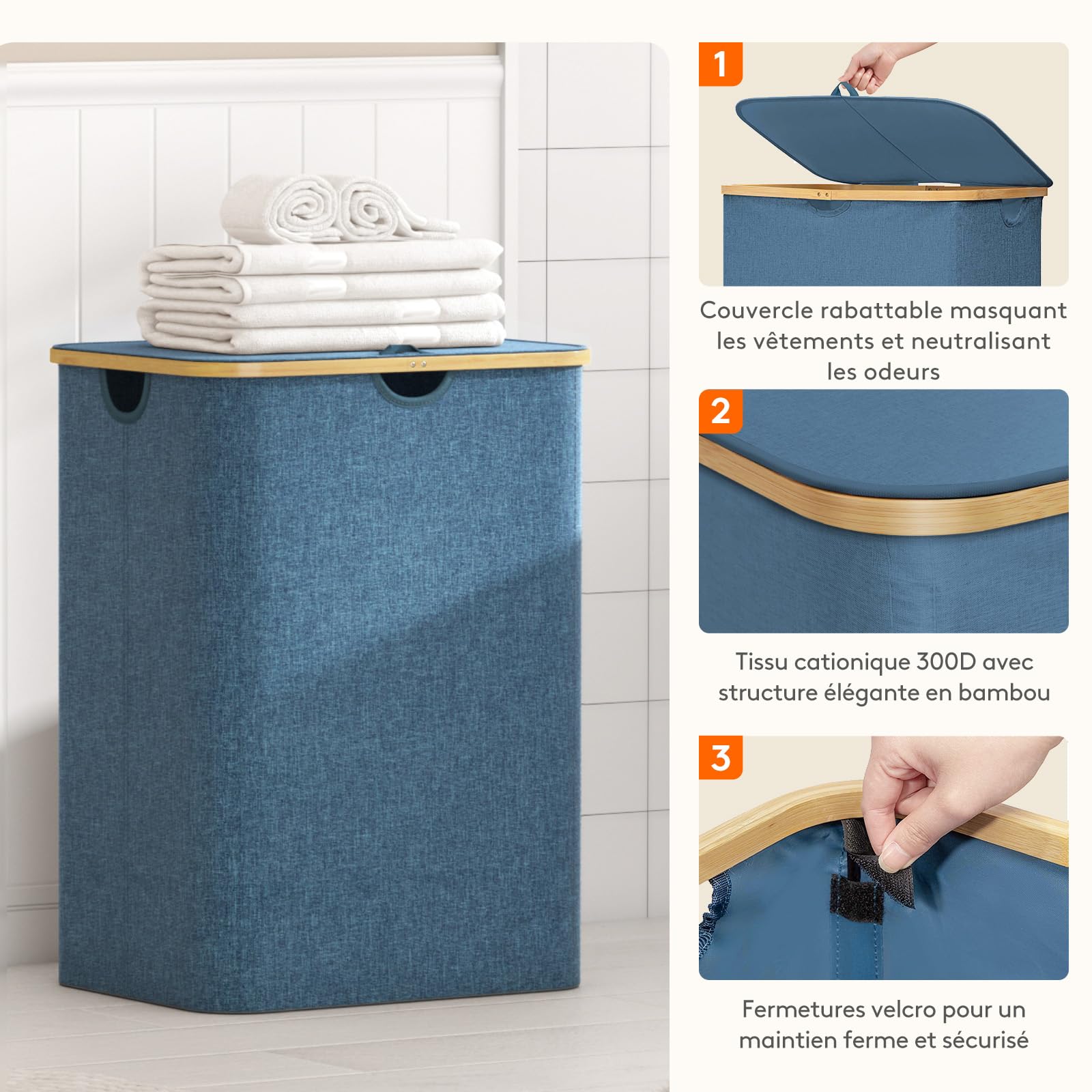 Les tiges robustes offrent un soutien exceptionnel et garantissent la stabilité, ce qui lui permet de supporter de lourdes charges sans se plier. Tiges d'insertion robustes Ce design vous permet d’organiser votre linge dès le départ, vous faisant gagner du temps avant le lavage et évitant les transferts de couleur ou les dommages aux tissus délicats. Il est parfait pour n’importe quel espace—chambre, buanderie, salle de bain ou placard—et vous aide à éliminer les piles de linge en désordre. Couvercle robuste en carton Organisation sans Effort : Transformez votre routine de lessive avec notre grand panier à linge, disponible en capacités généreuses de 145L, 160L et 180L. Conçu pour contenir une semaine de vêtements, ce panier réduit vos déplacements vers la Hibisaws 160L Panier à linge avec couvercle, 2 compartiments, Corbeille Design à 3 Compartiments : Profitez de l’agencement unique à 3 compartiments qui facilite le tri des vêtements. Il suffit d’insérer les tiges de support, et il est prêt à l’emploi en moins d’une minute. Il est équipé d’une poignée latérale robuste pour un transport facile au besoin. Conçu pour contenir une semaine de vêtements, ce panier réduit vos déplacements vers la buanderie. Panier A Linge Plastique Lifewit Panier U00e0 Linge Avec Couvercle 100L, Panier A Linge Pliable, Avec Sac Amovible, Panier Rangement, Bac A Linge Sale Pour Chambre, Salle De Bain, Buanderie, Noir Corbeille Lifewit 160L Grand Panier à Linge Double en Bambou, Corbeille a Linge Pliable avec Couvercle, Poignées, 2 Compartiments avec Sacs Amovibles, pour Chambre, Salle de Bain, Buanderie, Noir foncé Il permet un rangement pratique dans les petits espaces et un transport sans effort Amélioration de la qualité du panier à linge grâce à des détails 1 Buanderie 2 Chambre 3 Salle de bain Optimisez votre routine de lessive Les poignées sont conçues pour résister à une utilisation fréquente et offrent une prise sûre, même lorsque vous transportez des objets lourds. Facile à Installer et Pliable : Notre panier à linge pliable dispose de instructions d’installation simples pour un assemblage rapide et sans tracas.