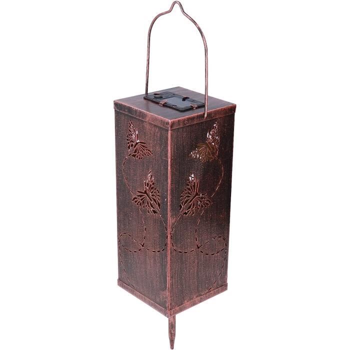 Fabriquée avec du fer de haute qualité, elle conserve sa beauté et sa fonctionnalité dans le temps. 【Chargement Solaire et USB】2 méthodes de chargement vous offrent plus d'options de chargement. L’éclairage extérieur solaire fée lanterne crée une ambiance poétique dès la nuit tombée. Sa forme de fée sur piquet, tenant une lanterne qui offre une lumière colorée, évoque immédiatement un univers magique digne d’un conte Lampe solaire déco Papillon, piquet, LED RVB Idéal comme cadeau pour les vacances, Noël, la fête des Mères, les anniversaires, Halloween, la Saint-Valentin, Pâques. Lanterne solaire d'extérieur, fée papillon, lumière solaire 【Ce qu'il y a dans l'emballage】L'emballage comprend un corps de lanterne solaire*1, un couvercle de lampe*1 et un manuel d'instructions*1 (en français) (REMARQUE : le câble de chargement USB-C n'est pas inclus). Les lanternes solaires vintage sont parfaites pour les jardins, les patios, les patios, les allées, les porches, pelouses et plus encore. Deco De Jardin MLOQI Lot De 2 Lanternes Solaires Pour Extérieur, Fée De Papillon Dans Un Bocal Mason, Lampe De Jardin Solaire LED étanche à Suspendre Pour Intérieur Et Extérieur Décoration (couleur Lanterne Solaire Papillon Même en hiver ou en saison des pluies lorsque le soleil manque, cette lanterne solaire extérieur jardin peut être éclairée normalement, ce qui en fait un choix parfait pour votre cadeau de Noël. Et lanterne solaire suspendue présente des motifs creux sur 5 côtés, lorsqu'elle est accrochée au mur, elle peut également projeter des motifs parfaits au sol. Parfait pour un rendez-vous romantique ou une réunion entre amis.